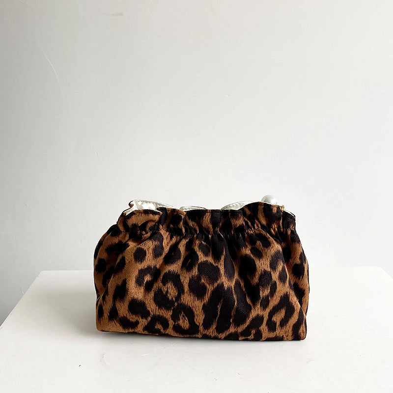leopard cosmetic bag with pearl detail at zipper