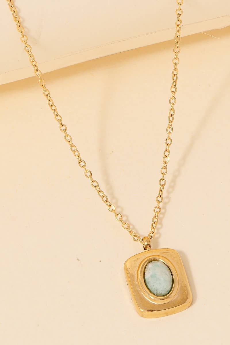 This is the perfect necklace for any occasion necklace exudes a refined stainless steel oval stone stud square pendant design. This necklace is an effortless way to add some personality to your outfit. Available in BL, CH and IV. This item is sold in packs of 1.