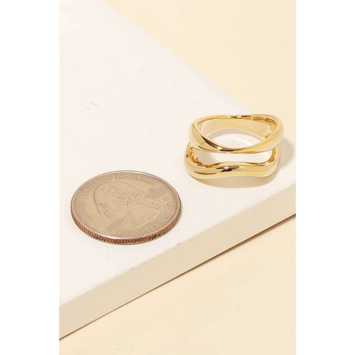 This piece is both elegant and versatile, this ring incorporates a flawless warped metallic double line ring design. Perfect for adding some texture and dimension to any outfit, this accessory is a must-have.
