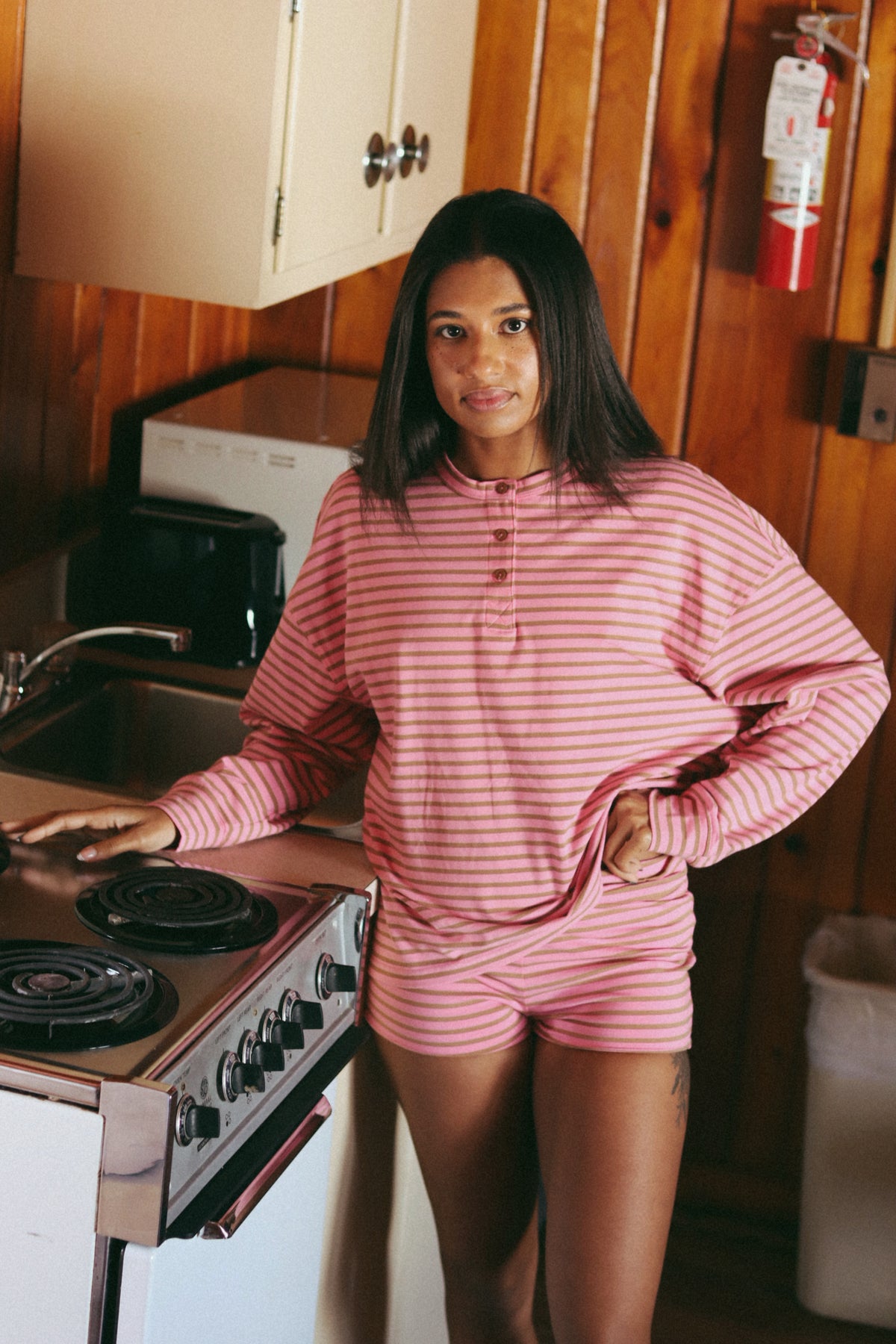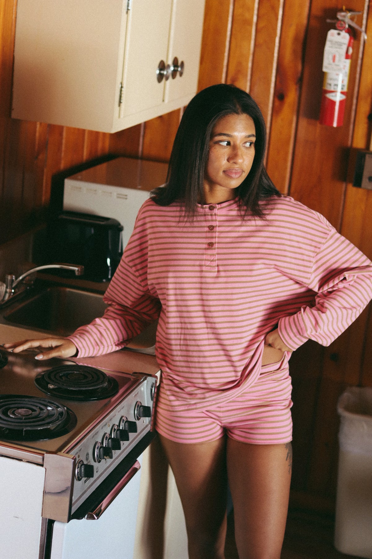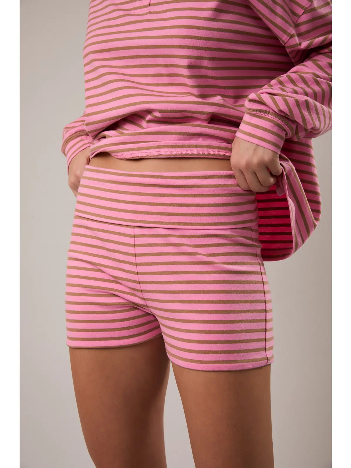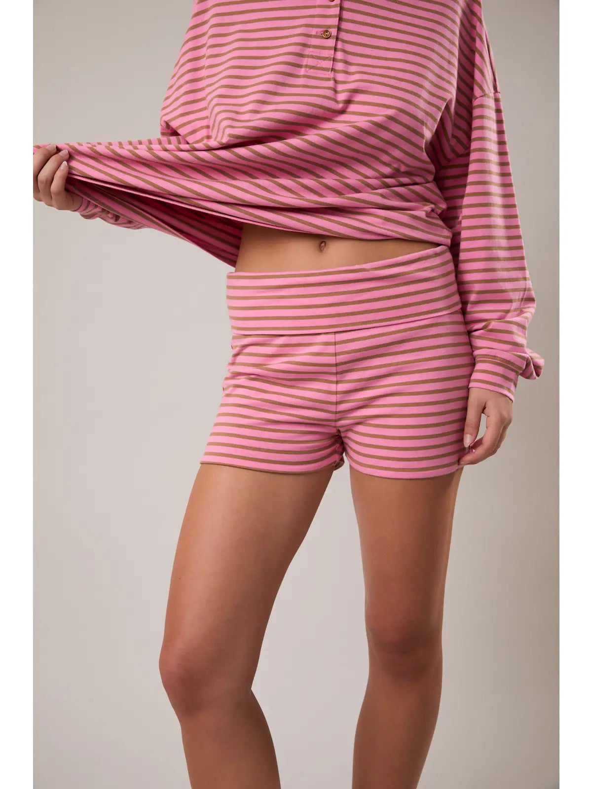 Our Harper foldover low rise shorts pair perfectly with our Harper oversized striped top.