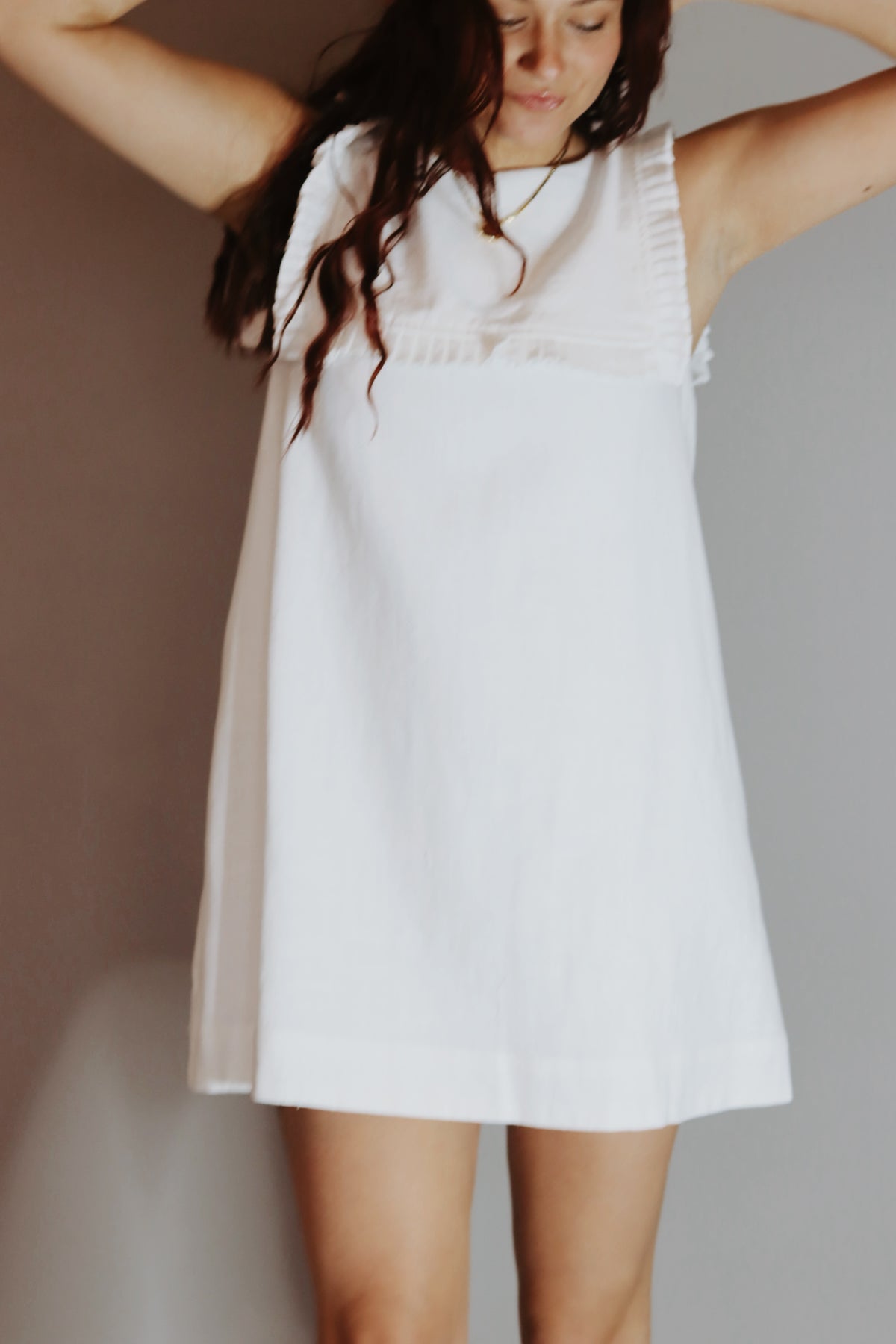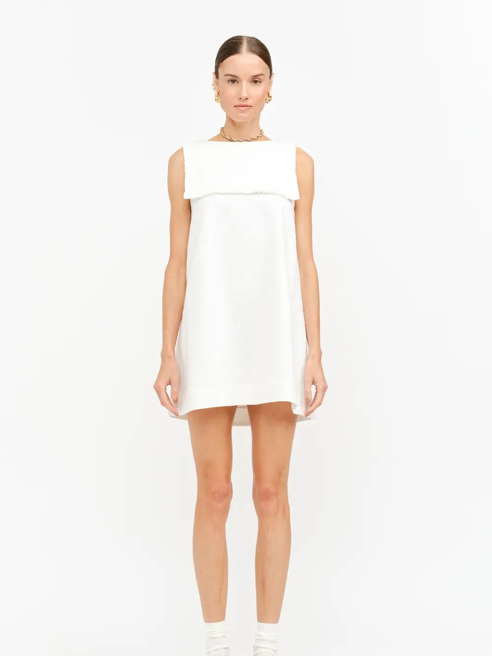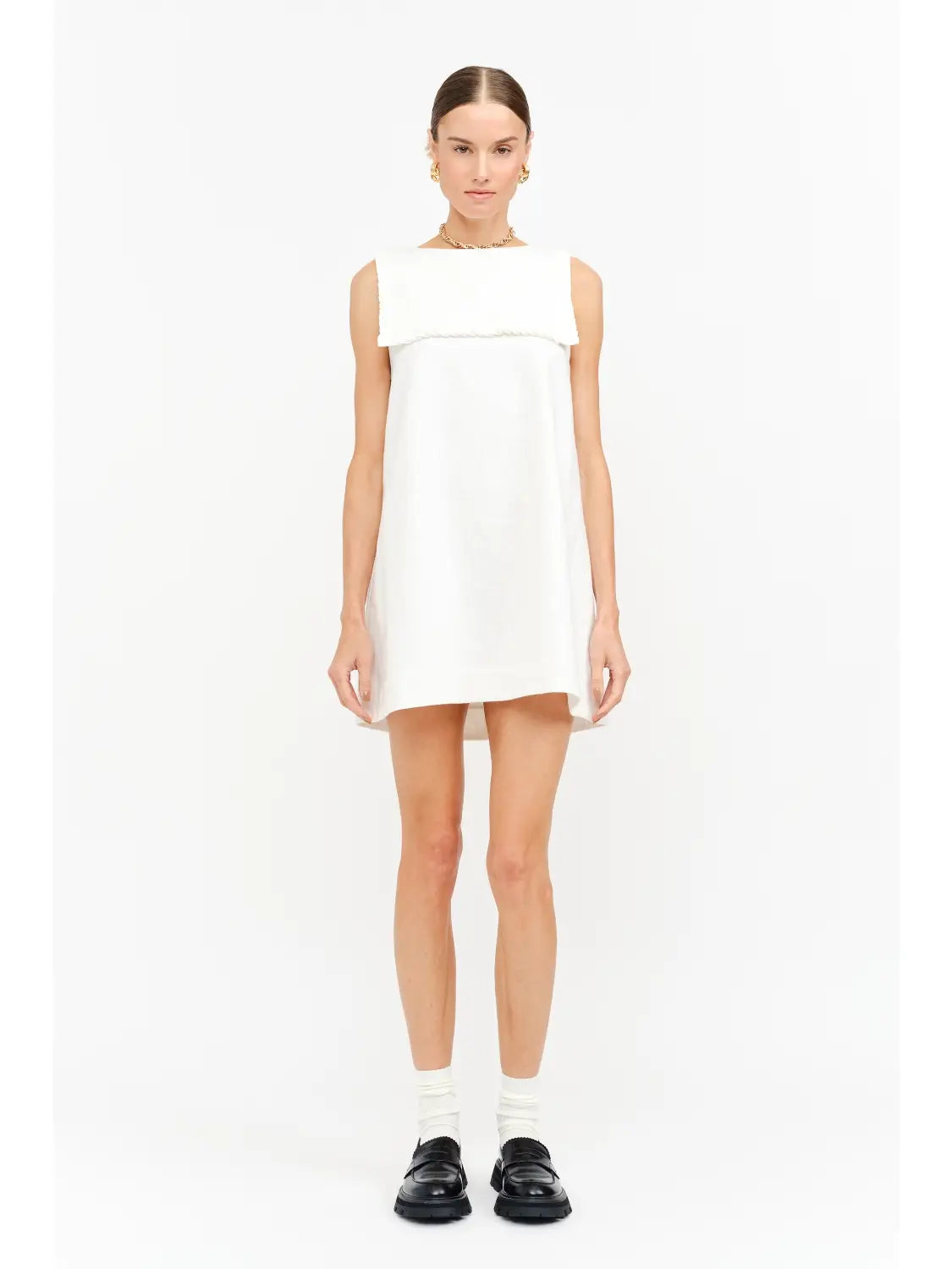 Harper Dress Clean and quietly charming, this linen blend mini dress keeps things polished with a crisp collar detail and an easy, swingy silhouette. Lightweight and breathable with subtle structure, it skims the body for an effortless look that works from brunch to museum days with a simple sandal swap. Care instructions: - Hand wash cold - Do not bleach - Lay flat to dry - Cool iron if needed - Do not tumble dry Model is 5'11" and is wearing a size small.