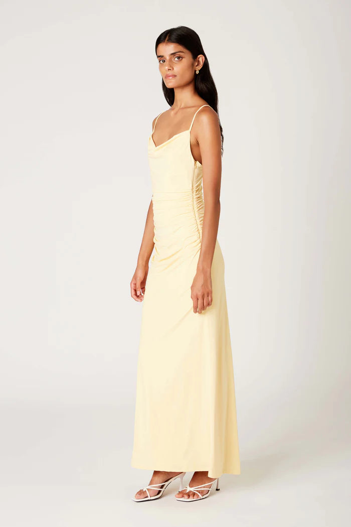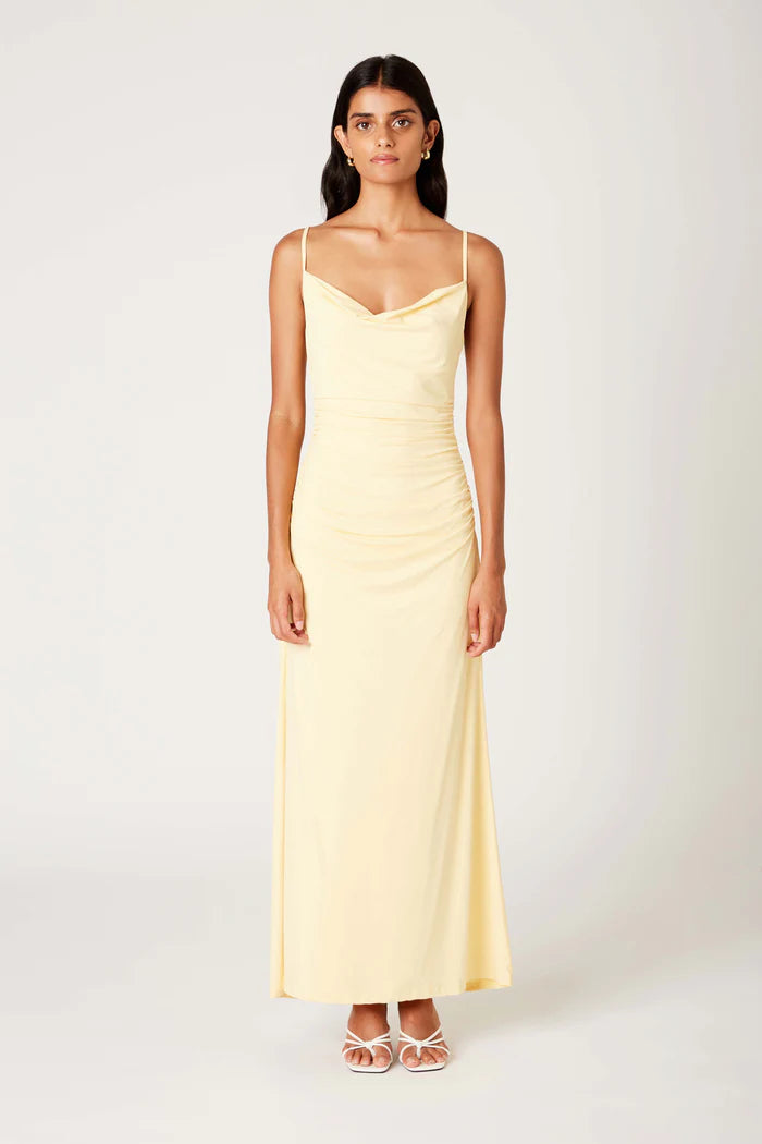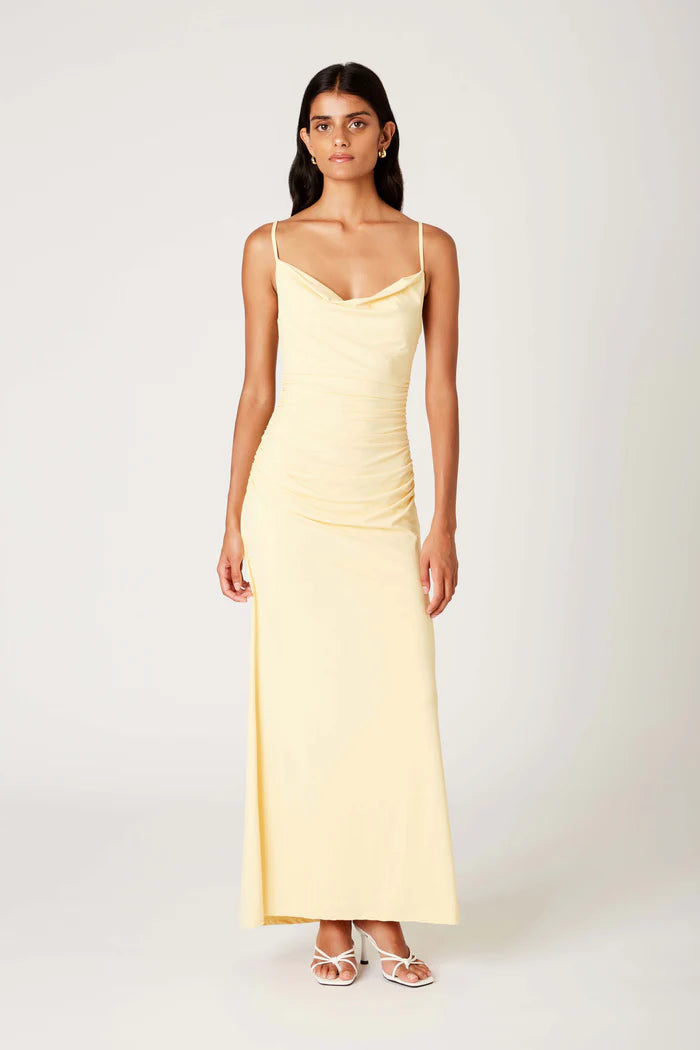 Soft, sultry, and effortlessly elegant. The INA Dress is a figure-hugging maxi with delicate ruching that flatters in all the right places. A draped cowl neckline and adjustable straps create a refined silhouette, while the flowing hemline adds a touch of grace to every step. Made for candlelit dinners, rooftop soirées, and everything in between.