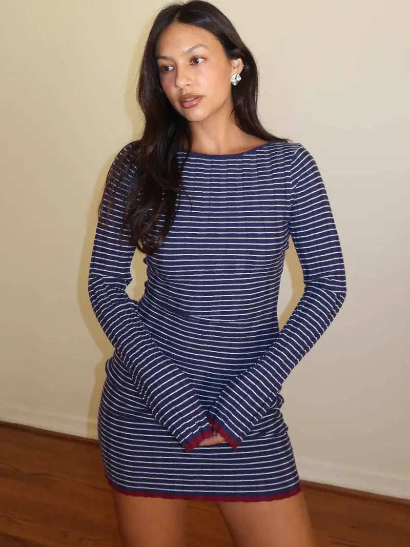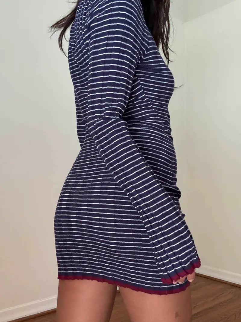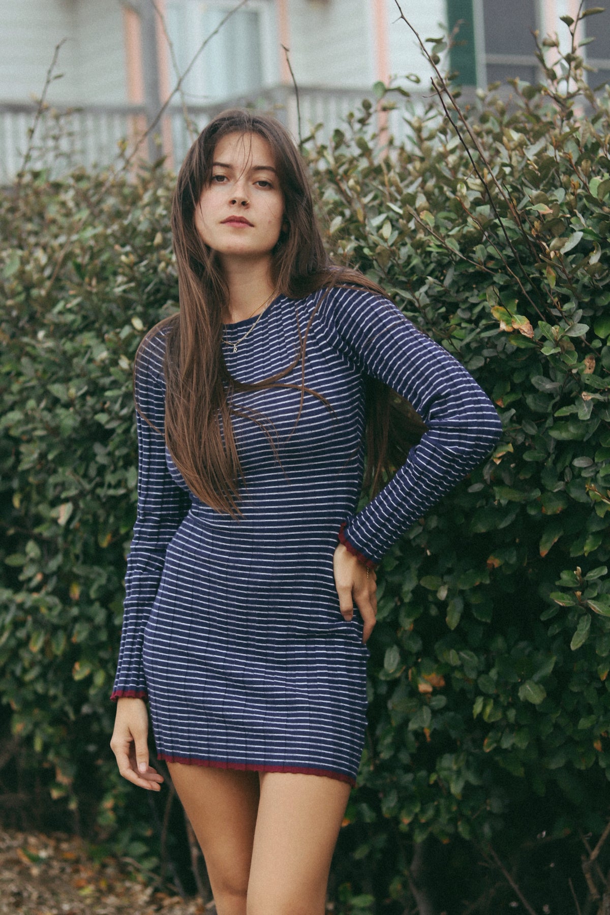 Knit Long Sleeve Mini Dress l 50% Viscose, 30% Nylon, 20% Polyester l Size S(3) - M(2) - L(1) l Made in China * MODEL IS 5'3" AND IS WEARING A SMALL.