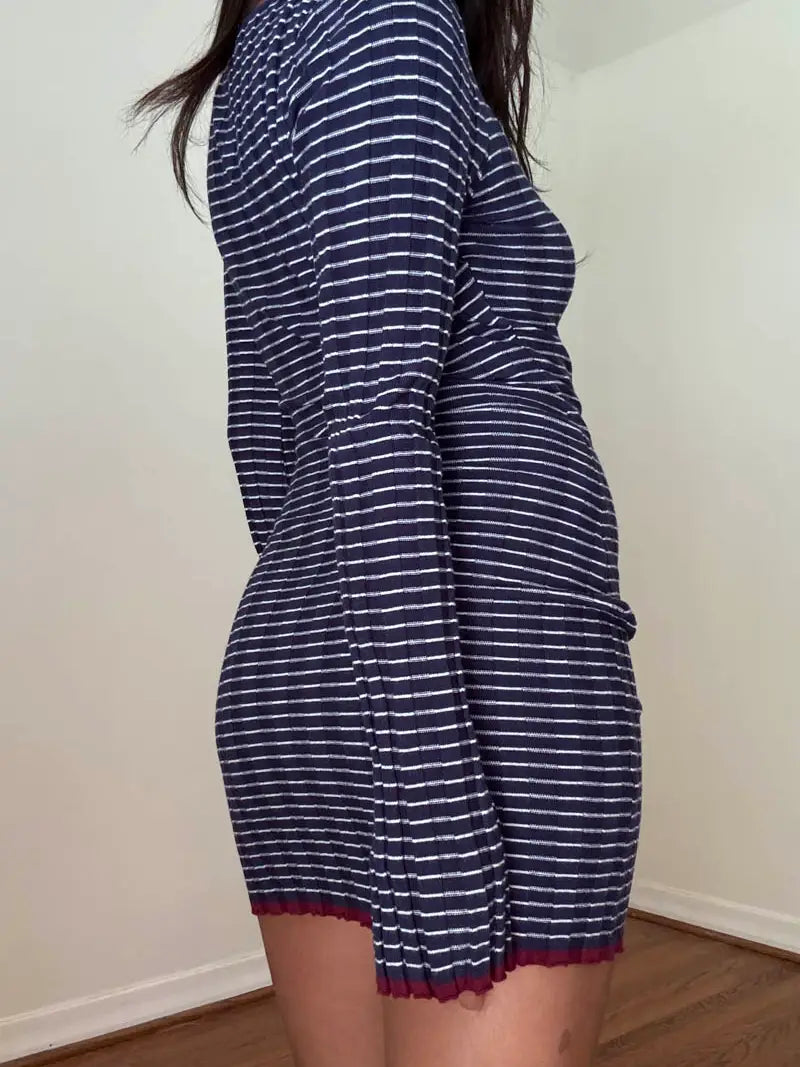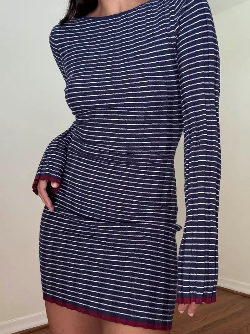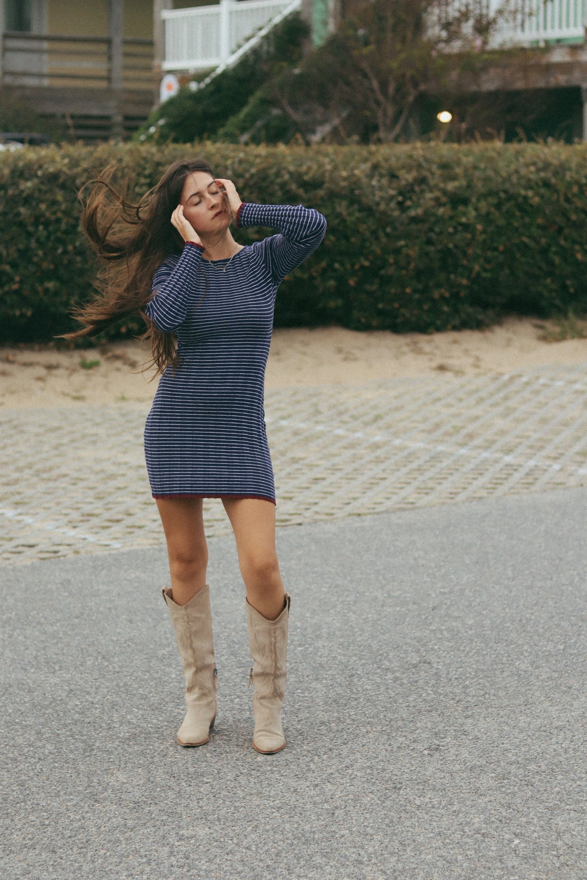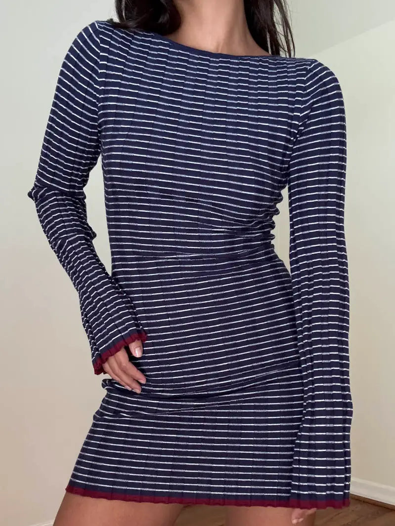 Knit Long Sleeve Mini Dress l 50% Viscose, 30% Nylon, 20% Polyester l Size S(3) - M(2) - L(1) l Made in China * MODEL IS 5'3" AND IS WEARING A SMALL.