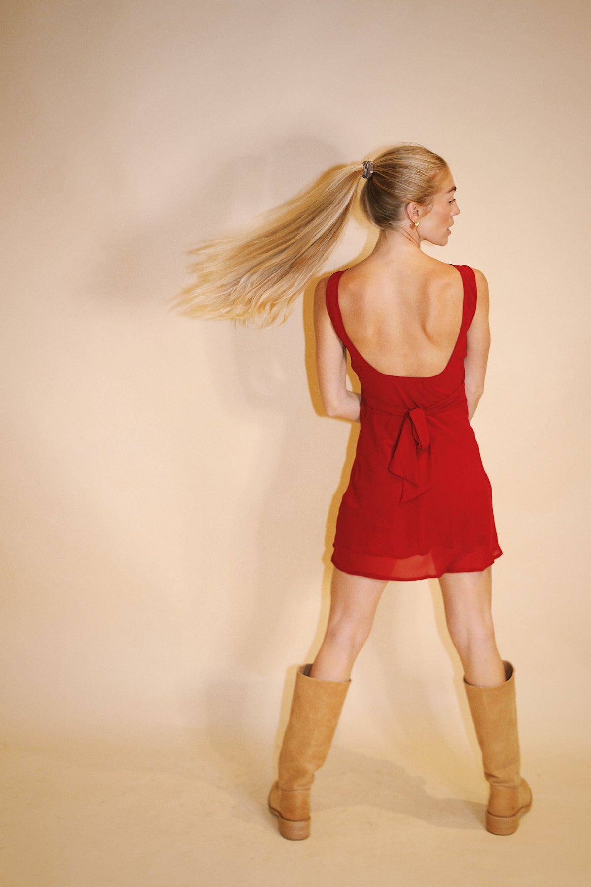 The Andi sleeveless dress is a classic little red mini dress. Wear it will tall boots or heels for your holiday parties.