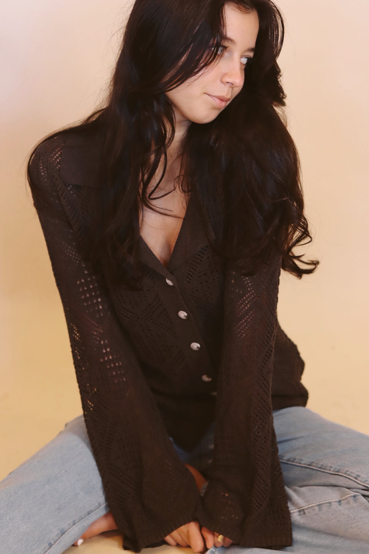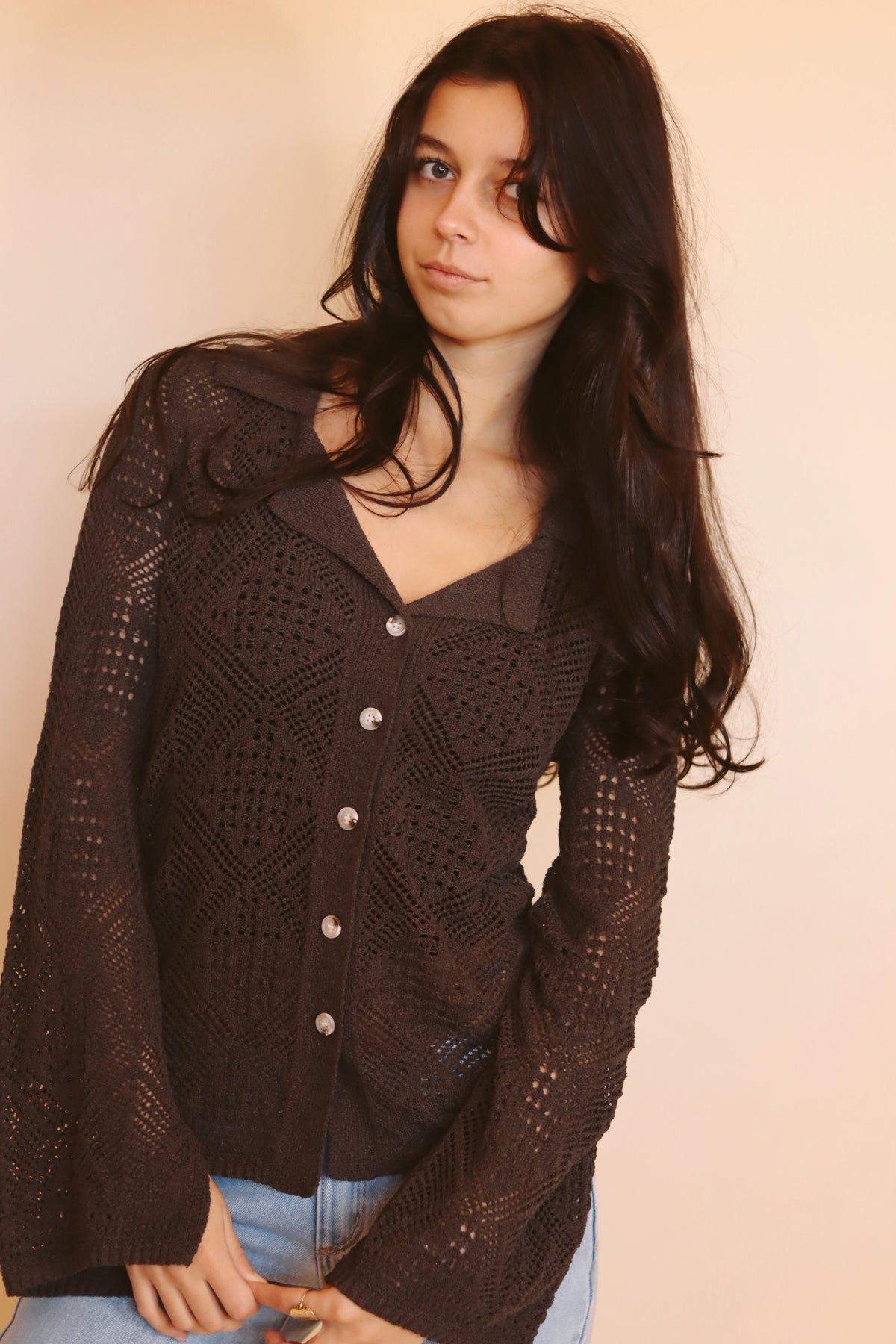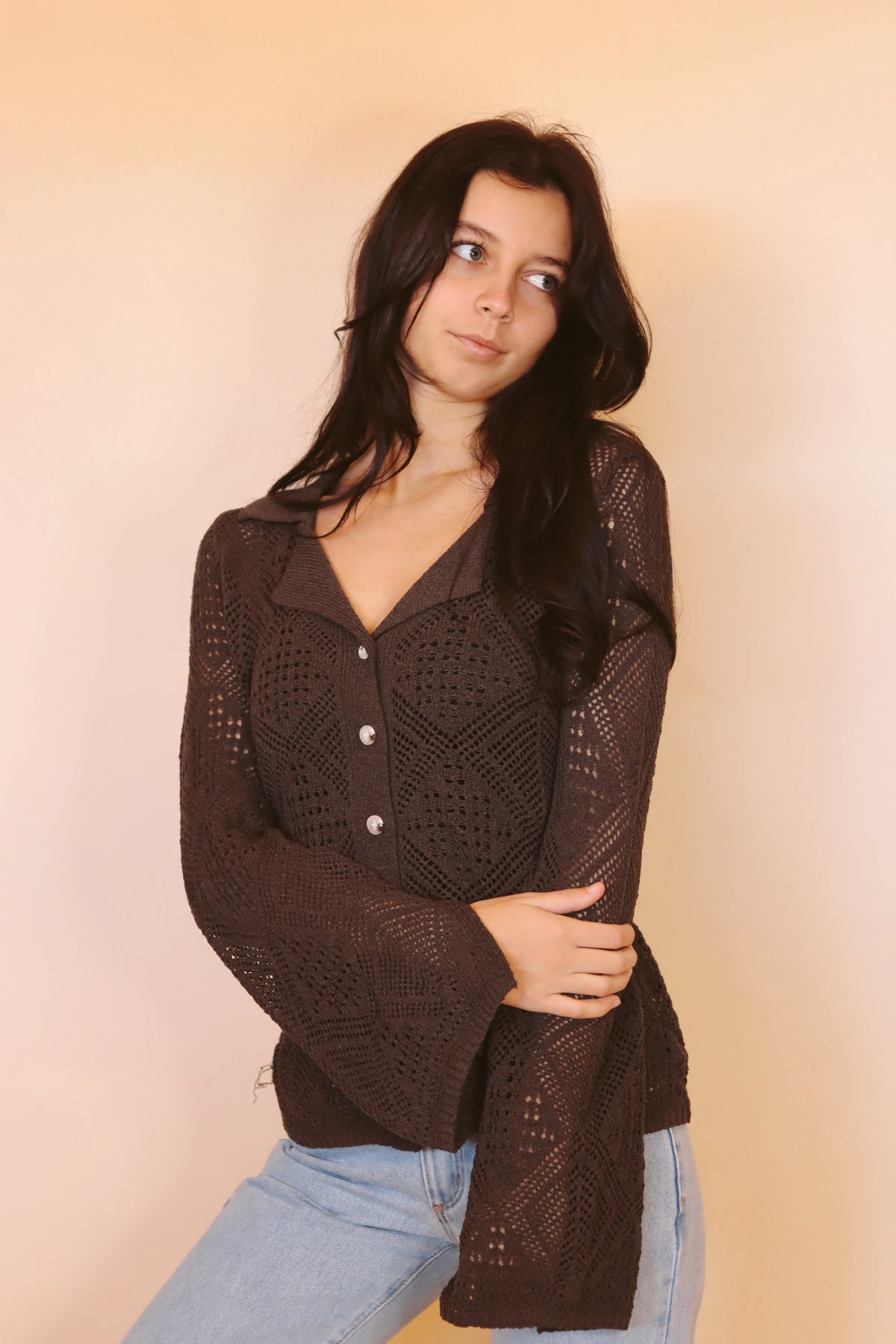 Our andi pointelle sweater is a comfy bell sleeve sweater that looks great layered over your fav tank.