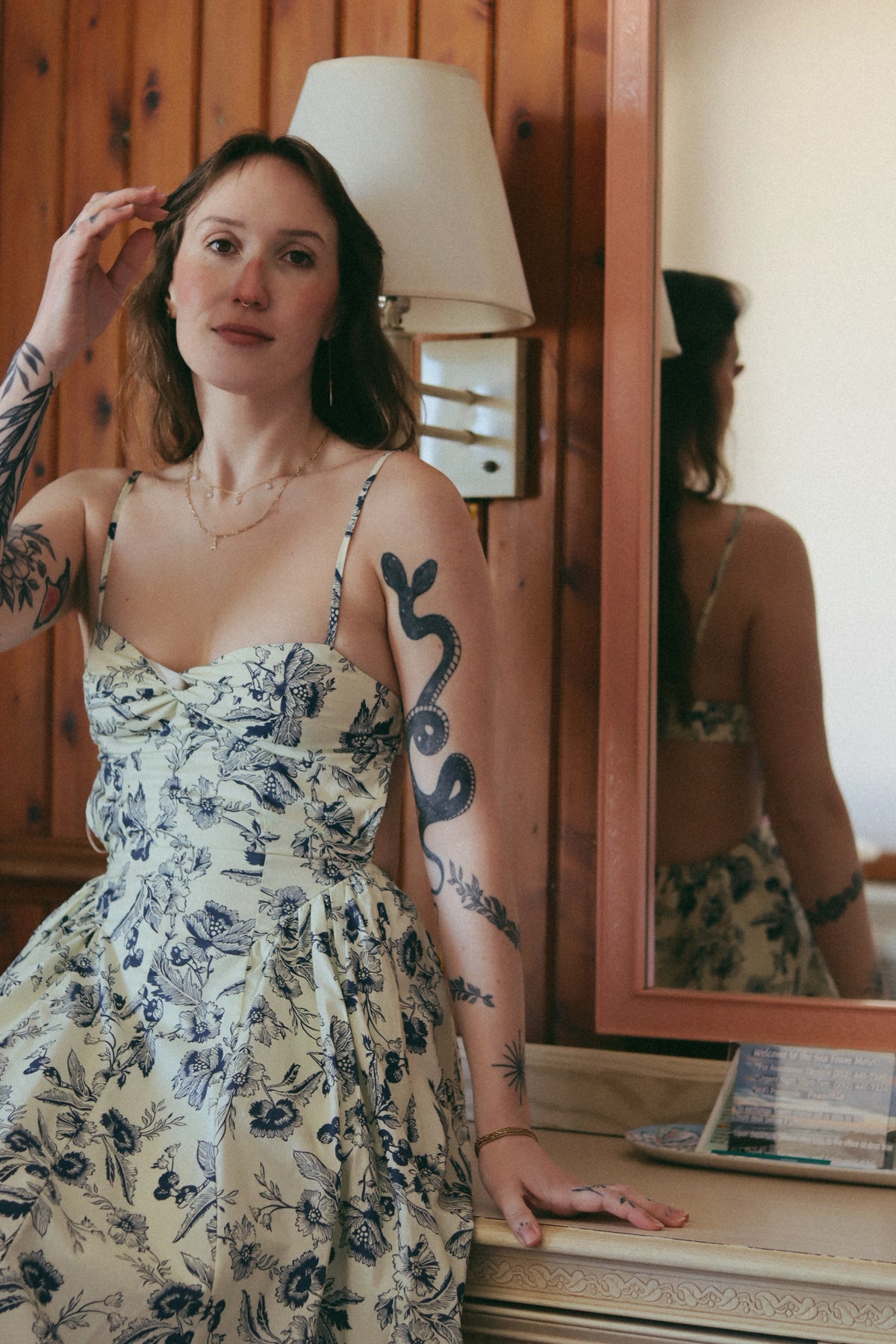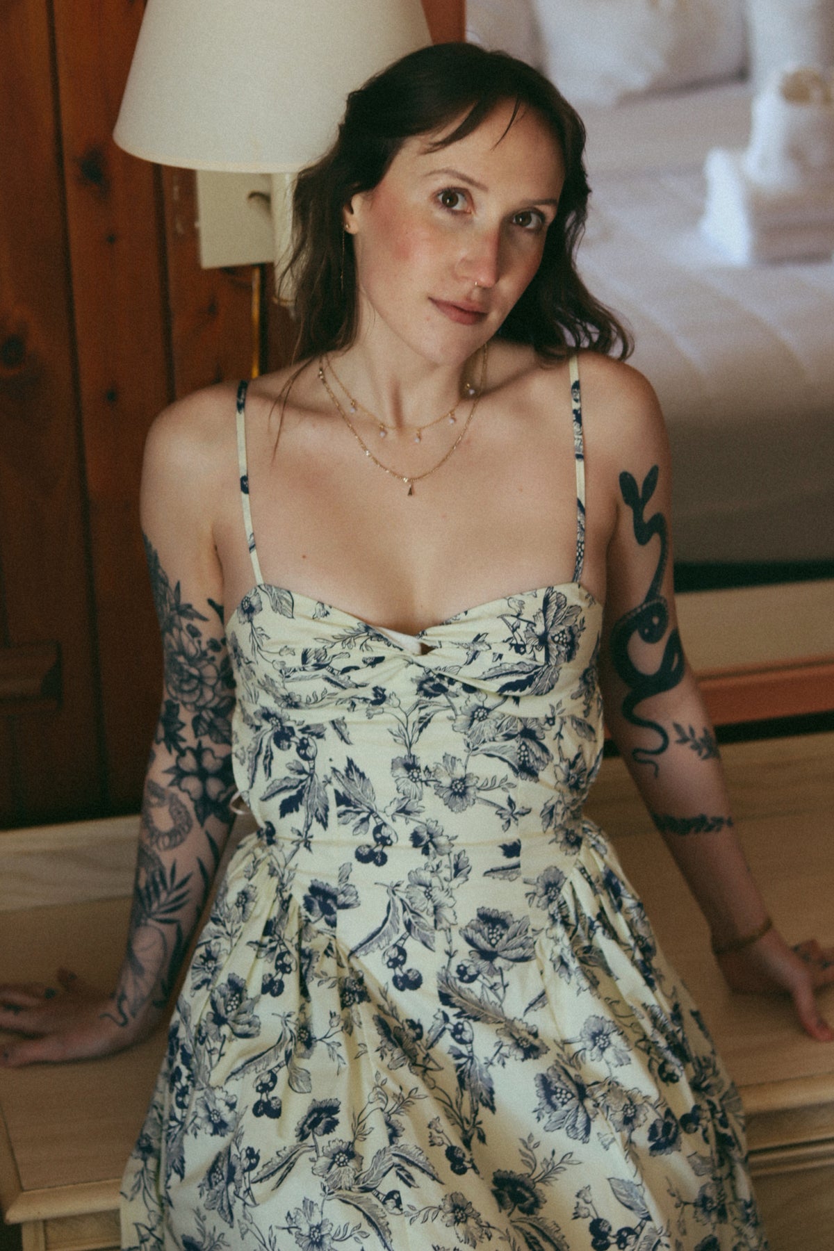 Our most wanted. The Destene Dress in Navy is a vision of timeless femininity, featuring a sweetheart neckline with delicate twist detailing and a structured bodice that flatters the form. The flowing A-line skirt adds graceful movement, while the open-back design with adjustable straps offers a modern, airy feel. A perfect balance of charm and sophistication.