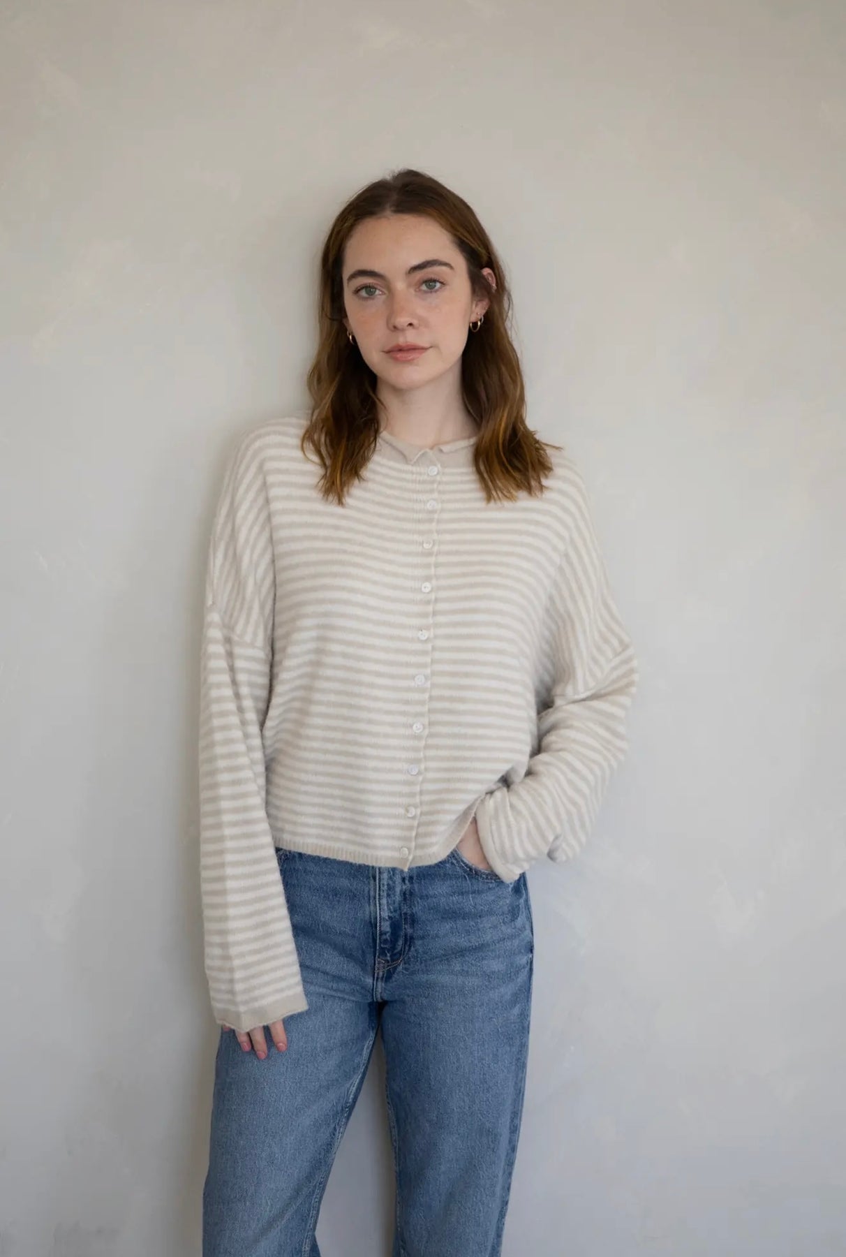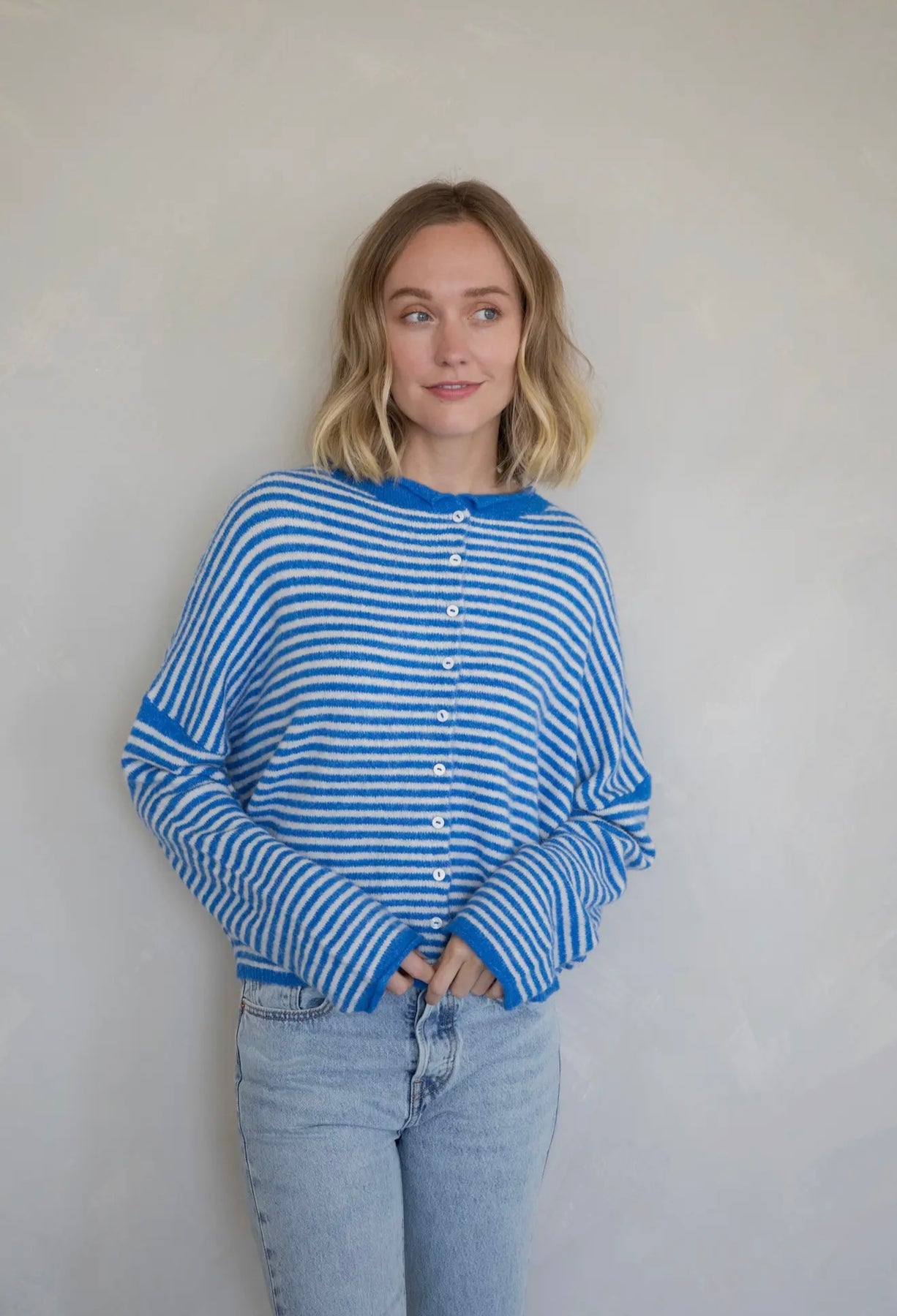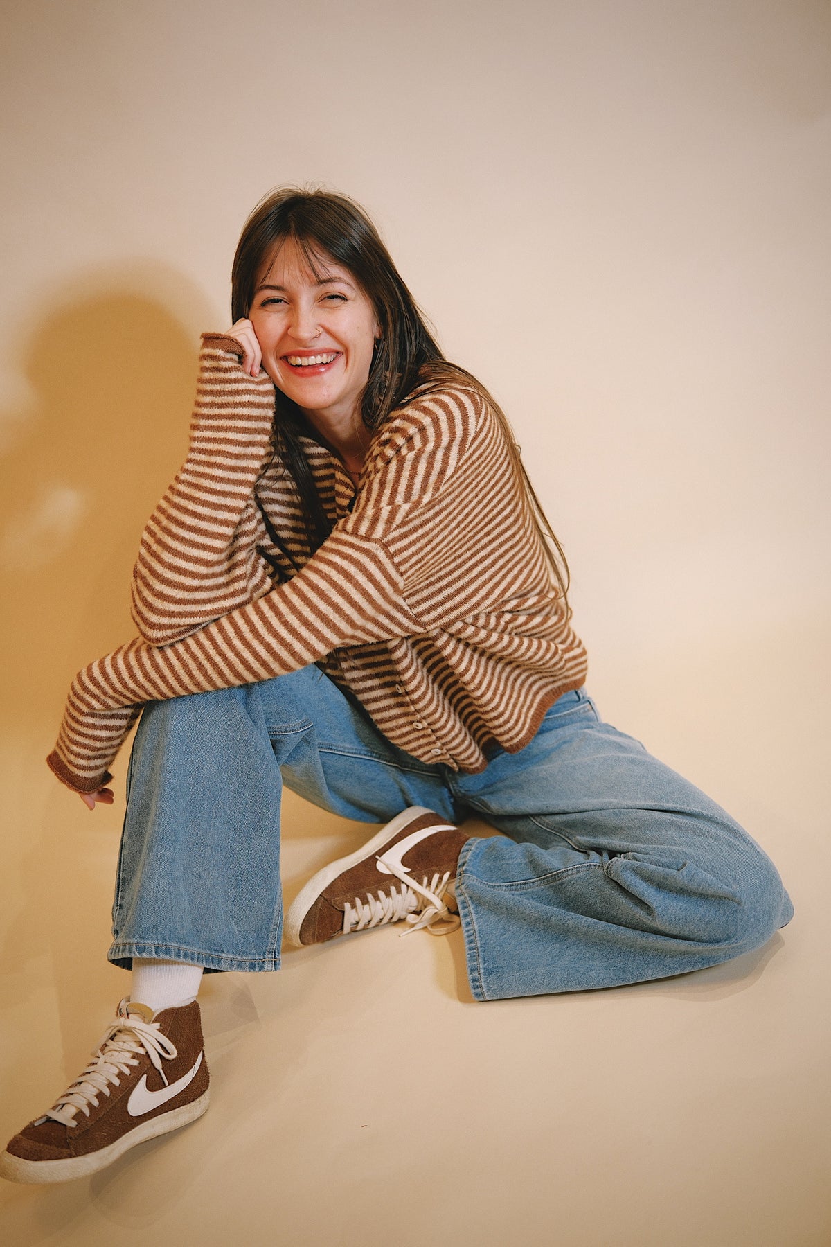 Our best selling cardigan in a new striped style. Shop the Piper cardigan in two colors — cream and blue!