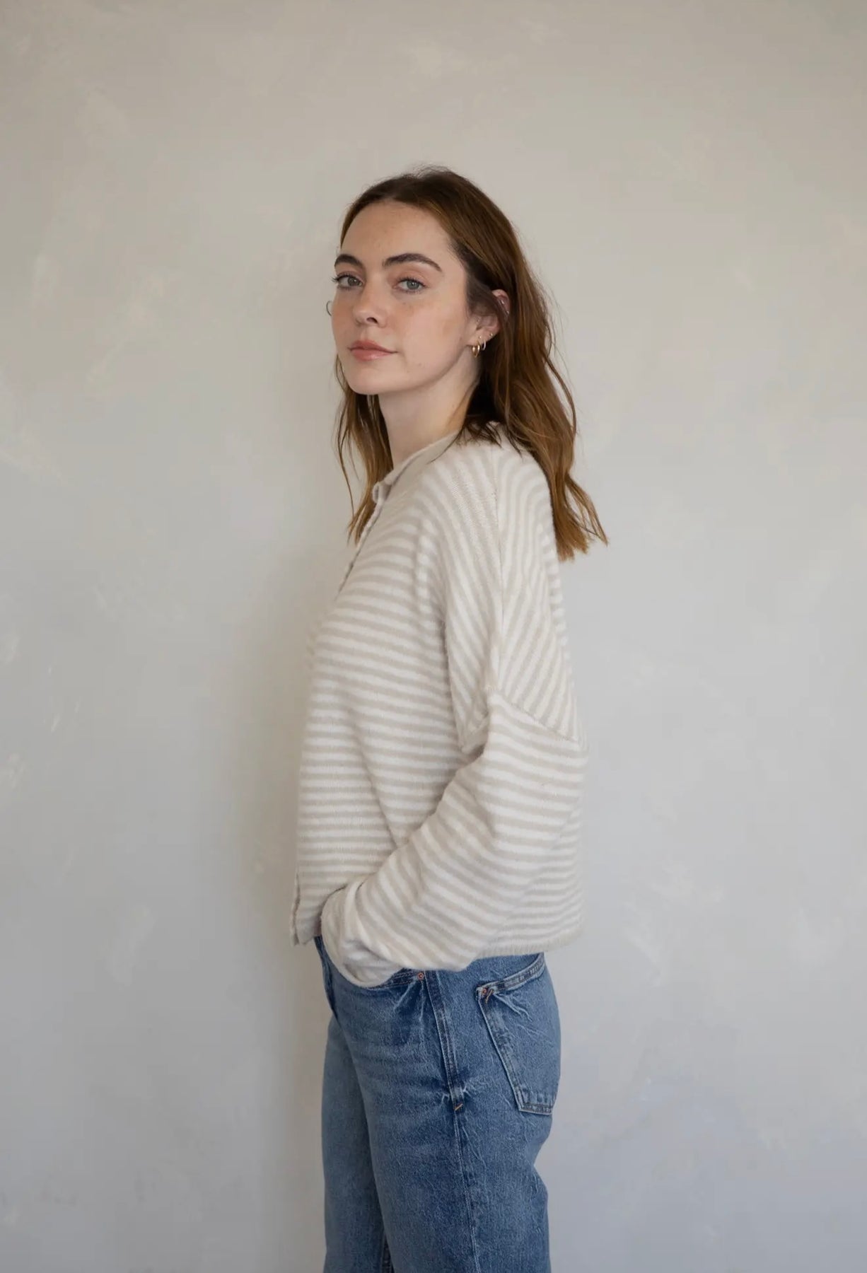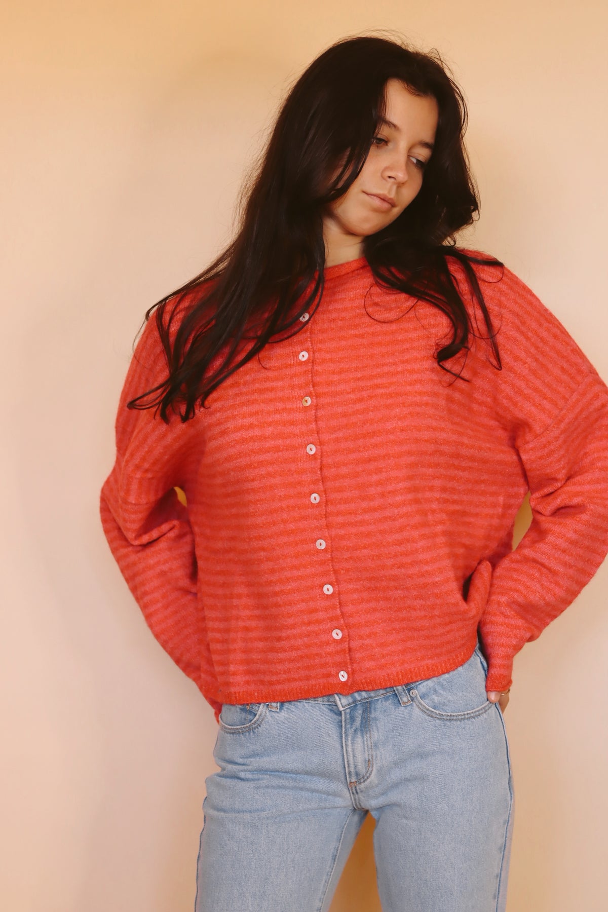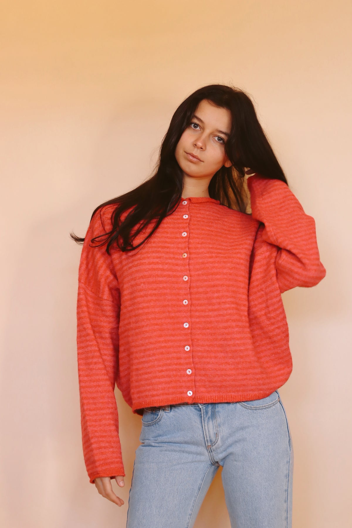 Our best selling cardigan in a new striped style. Shop the Piper cardigan in two colors — cream and blue!