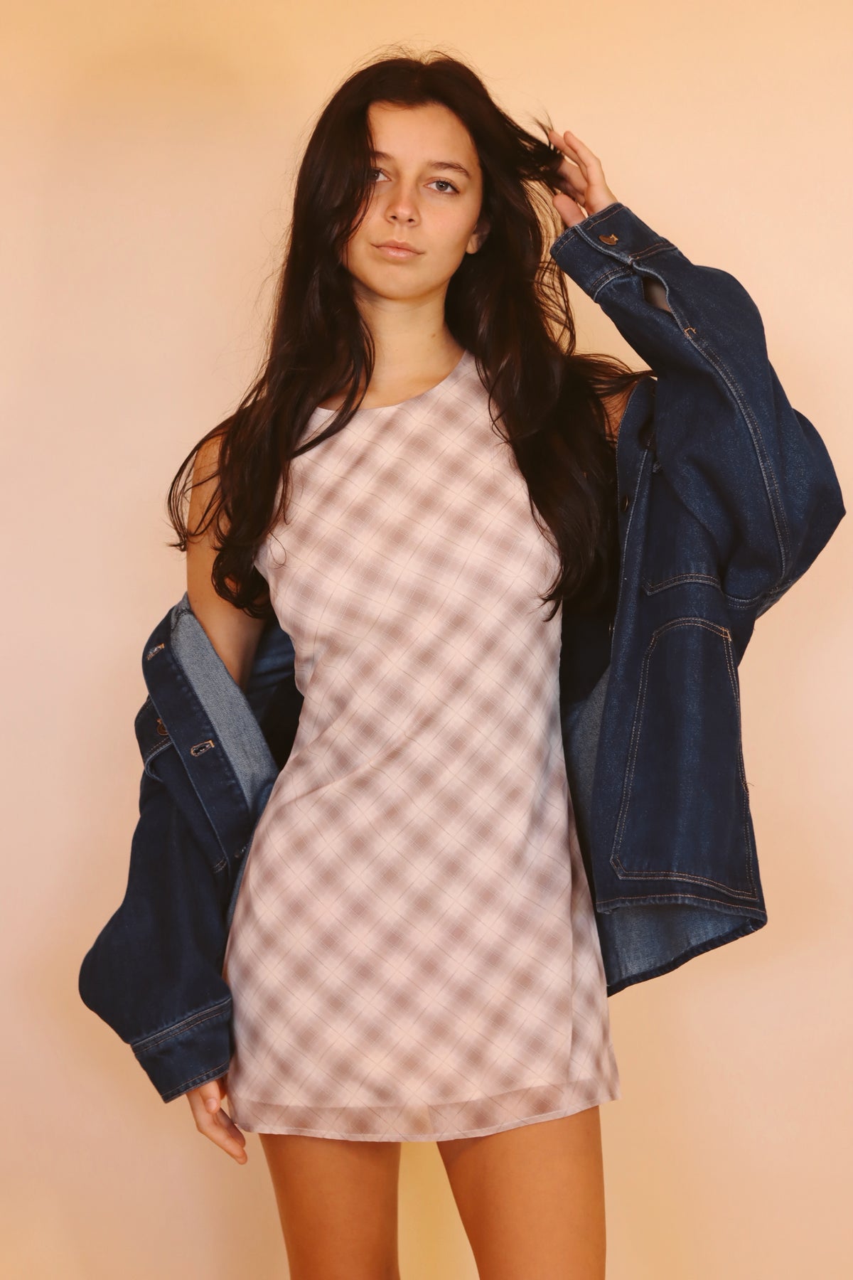 Our Sadie Sleeveless Plaid Mini Dress is a dream. Pair it with tights, tall boots, and your leather jacket for fall. We're obsessed.