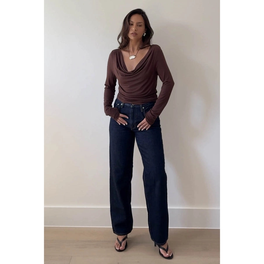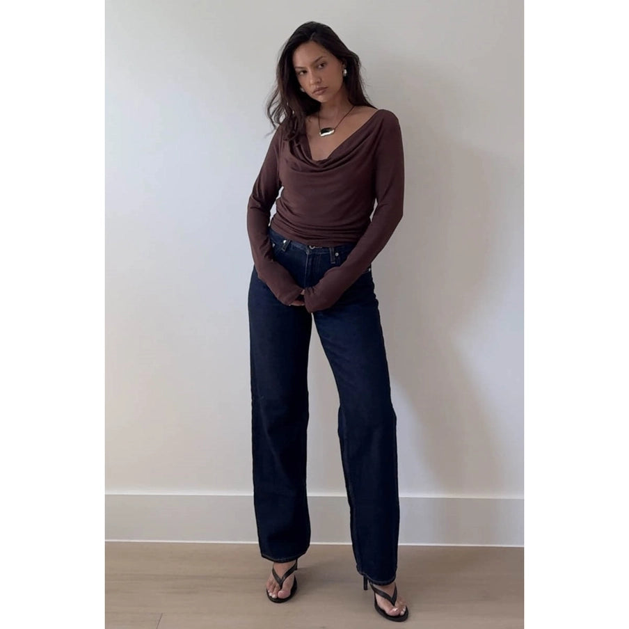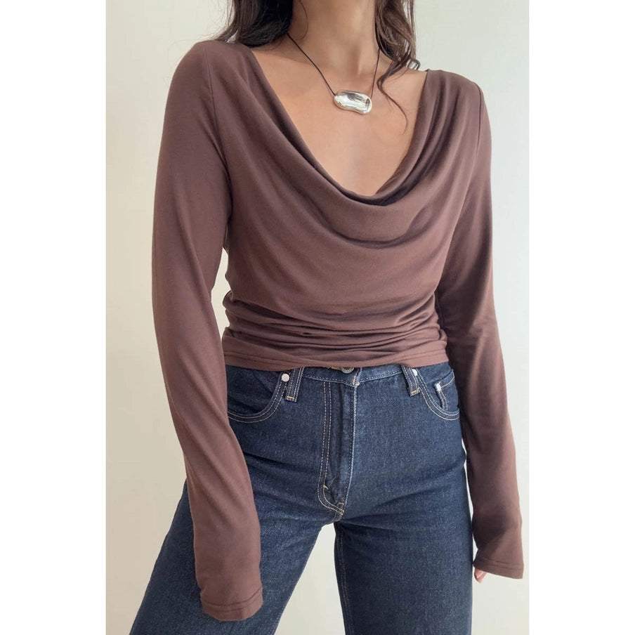 feel that drapes beautifully on the body while providing just the right amount of stretch for a flattering fit. The elegant cowl neck design adds a touch of sophistication, making it suitable for both casual outings and more formal occasions.