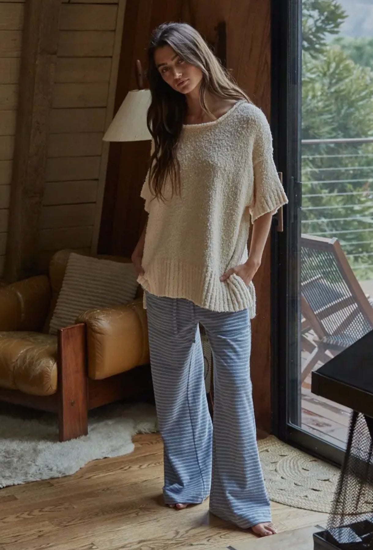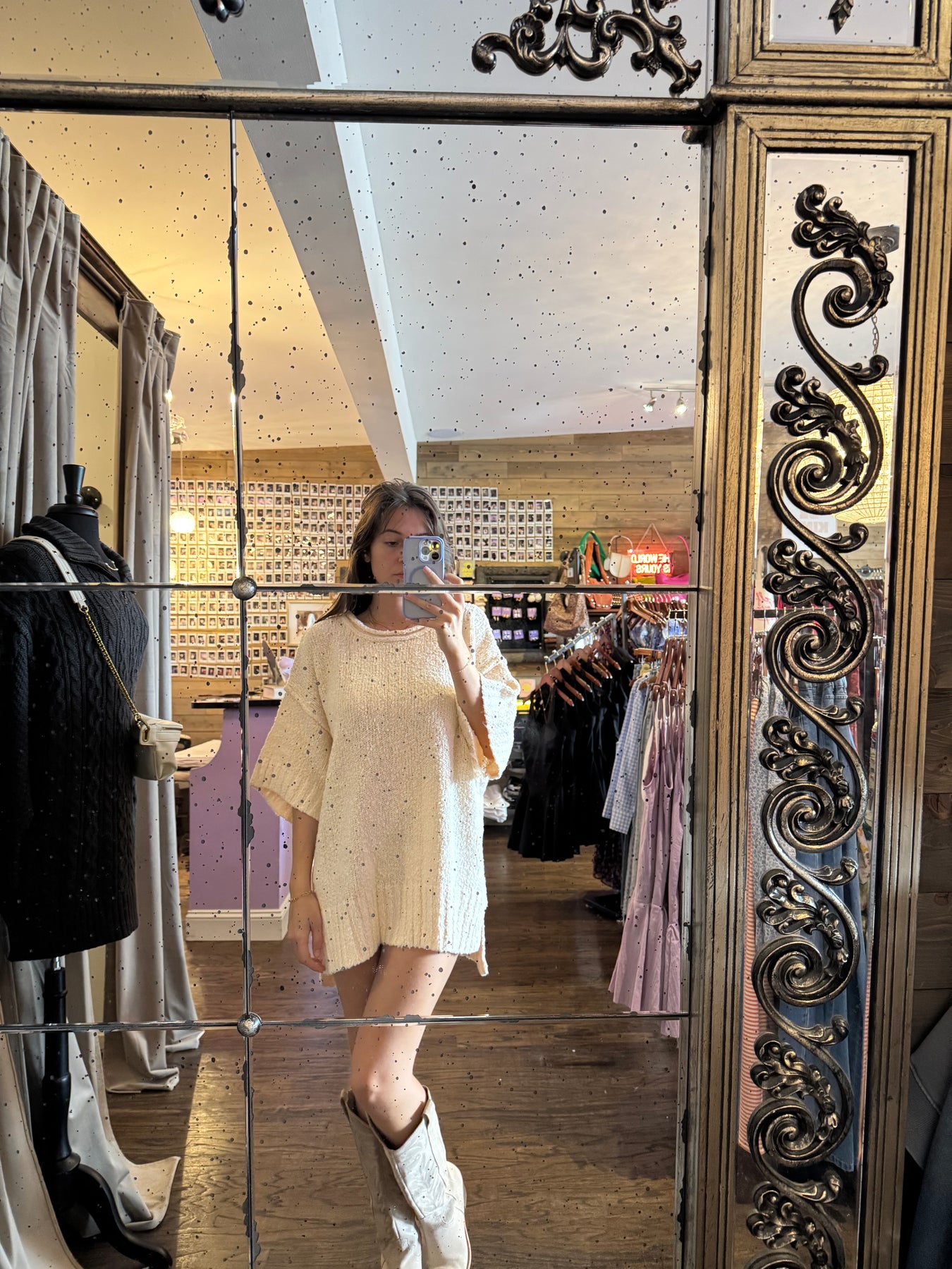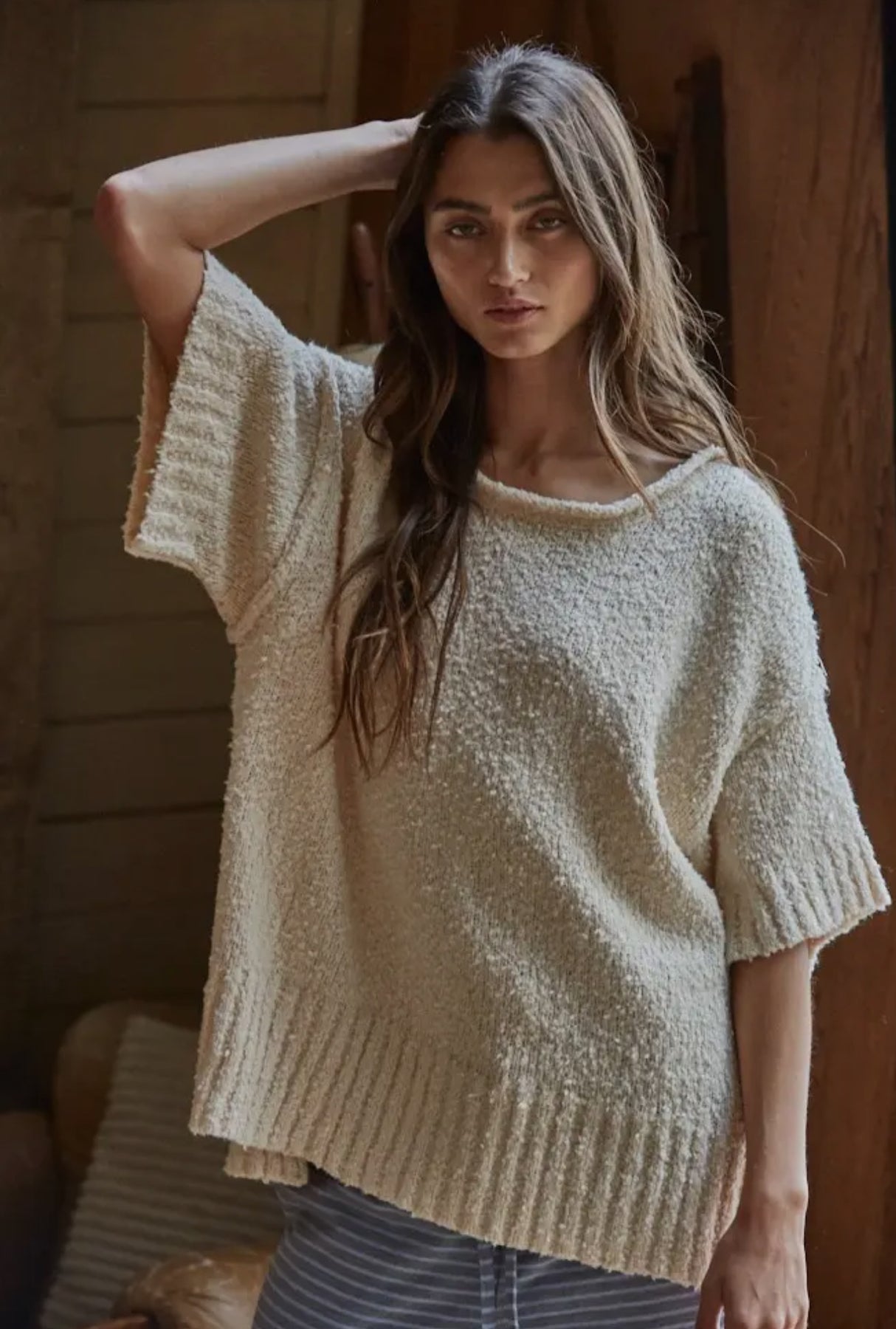 Perfect for transitional fall weather. Layer our Audra oversized tunic over your favorite long sleeve or wear bare armed for warmer fall days. We love it as a top with jeans or with a skirt and boots!