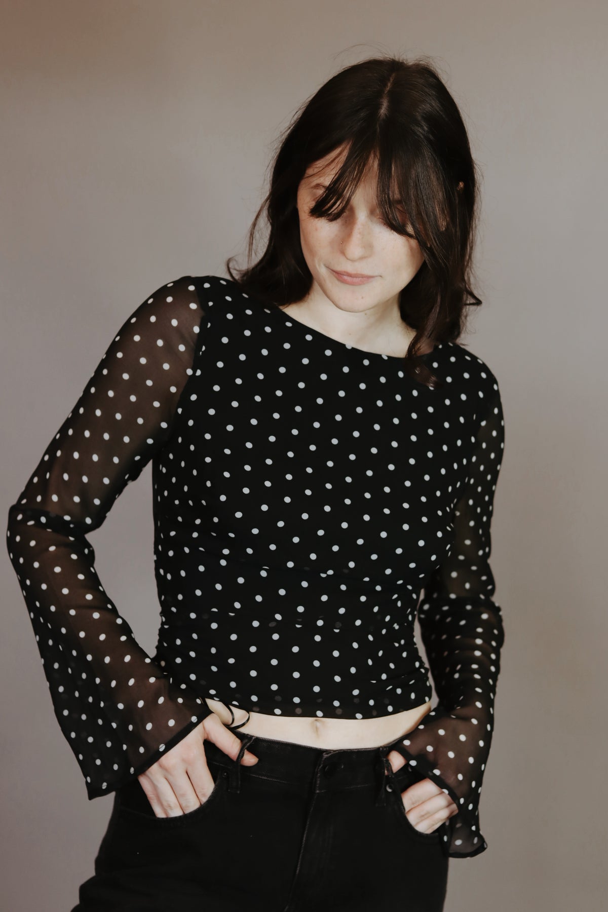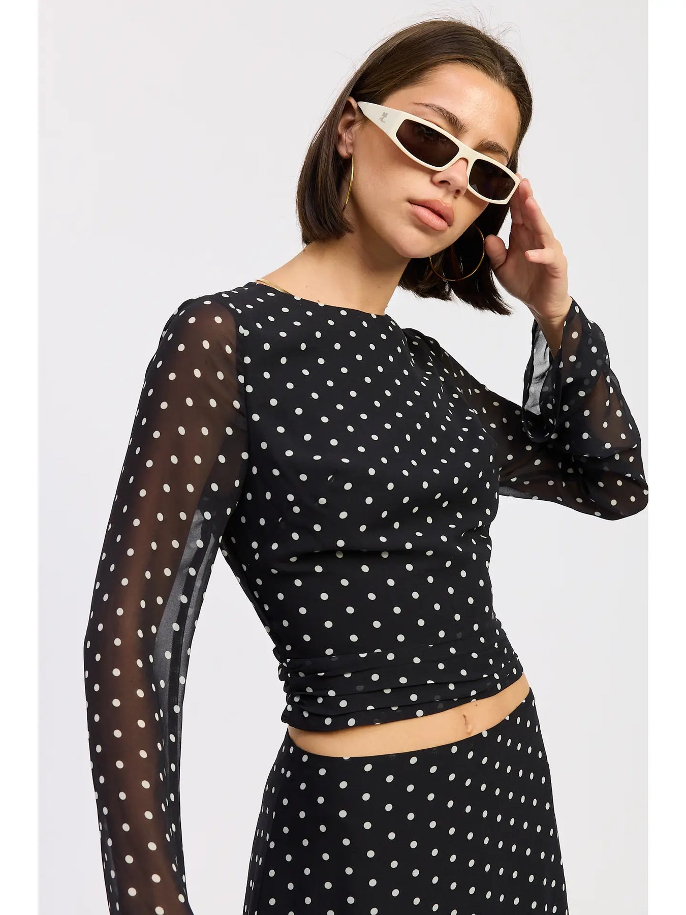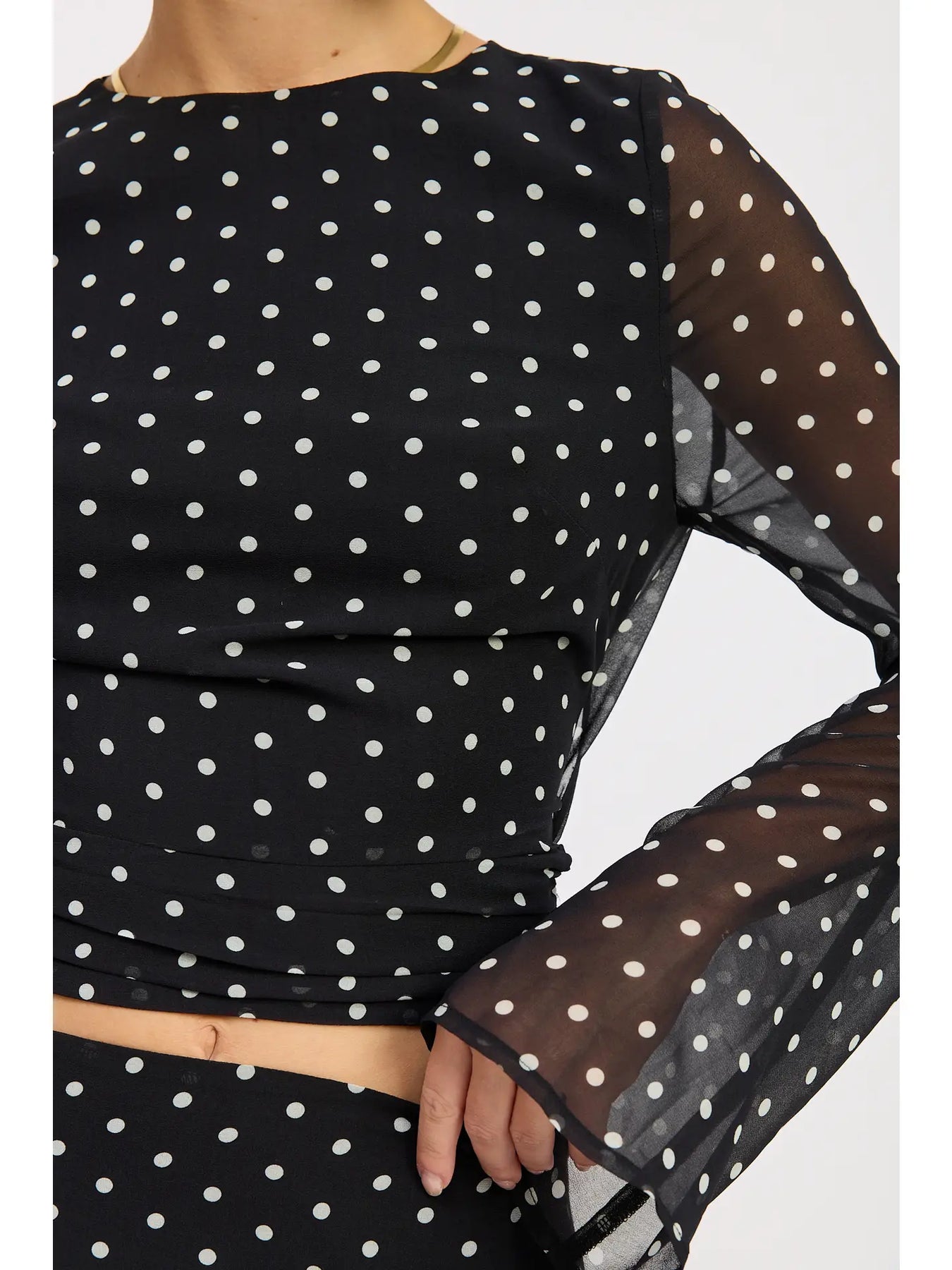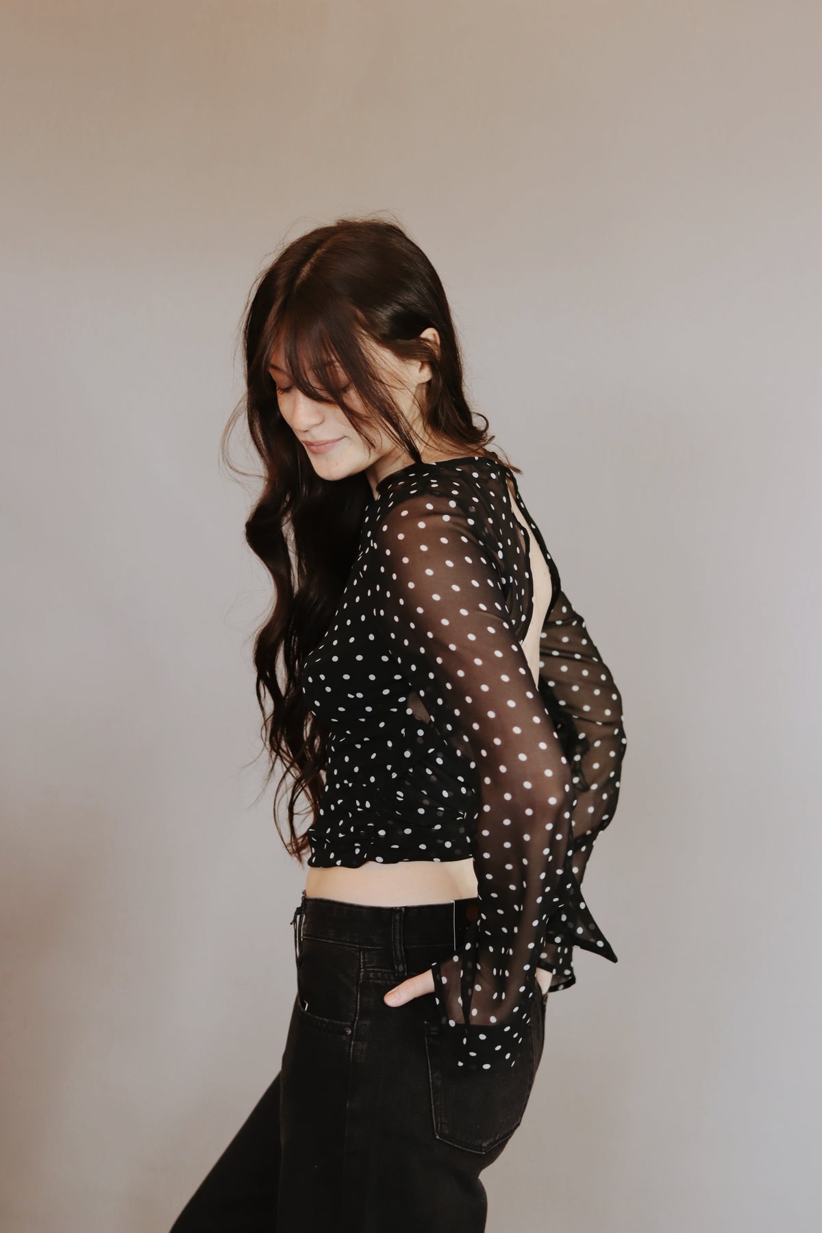 Cropped Polka Dot Sheer Top with Open Back Tie