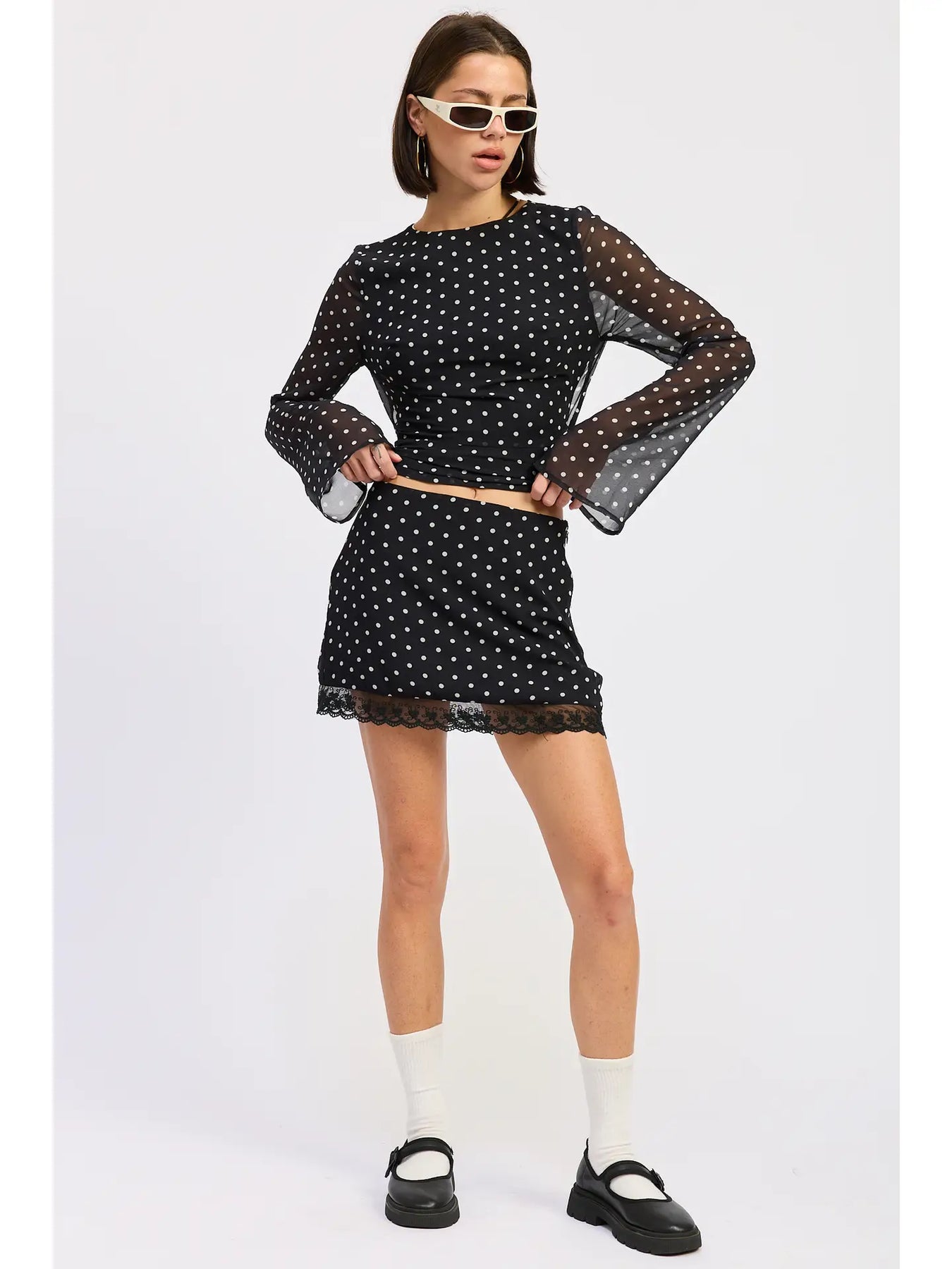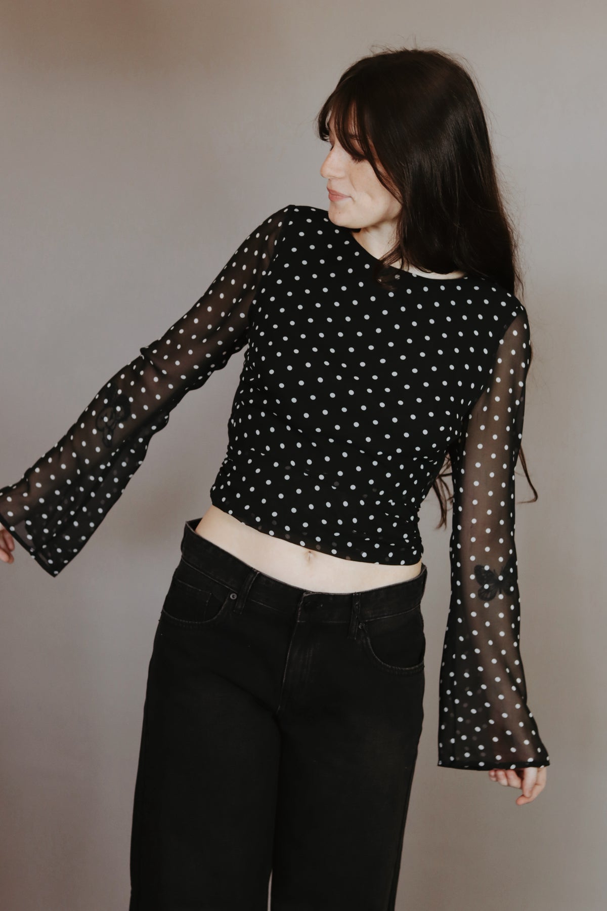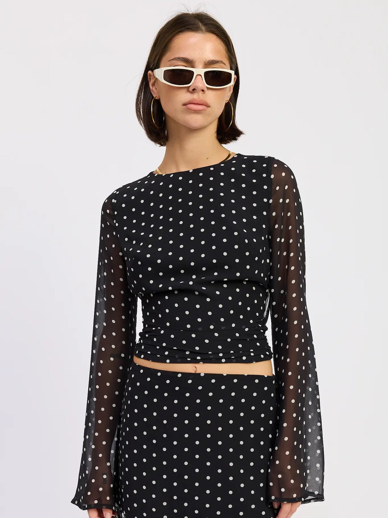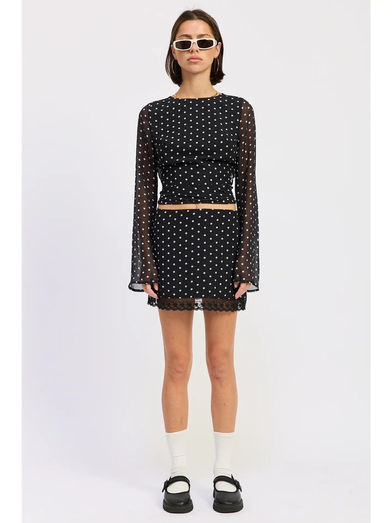 Cropped Polka Dot Sheer Top with Open Back Tie