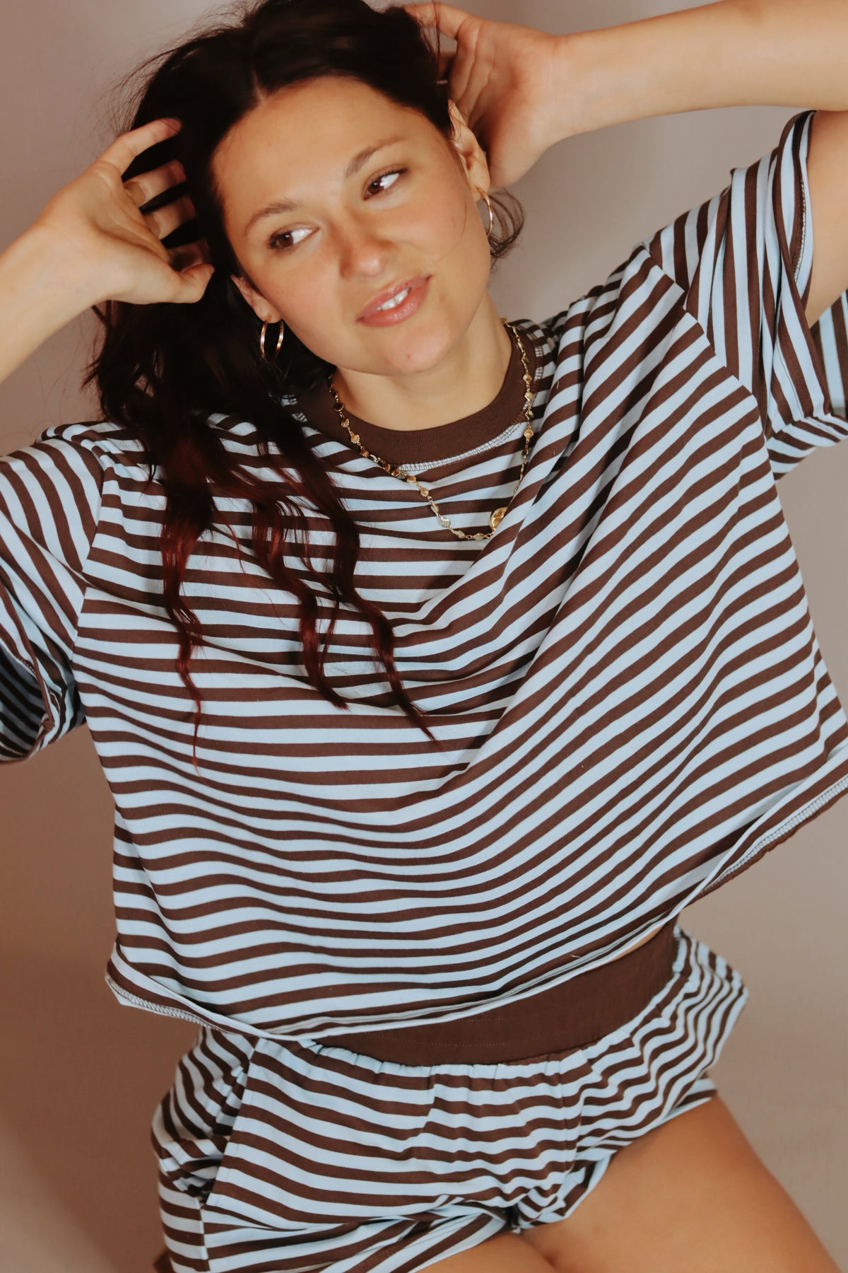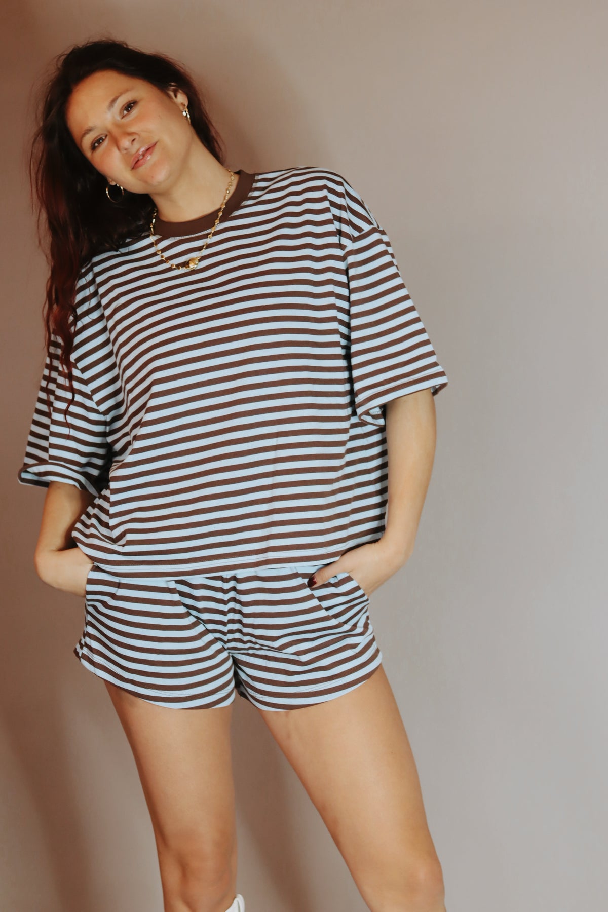 Part of a matching set - Lena Blue and Brown Shorts