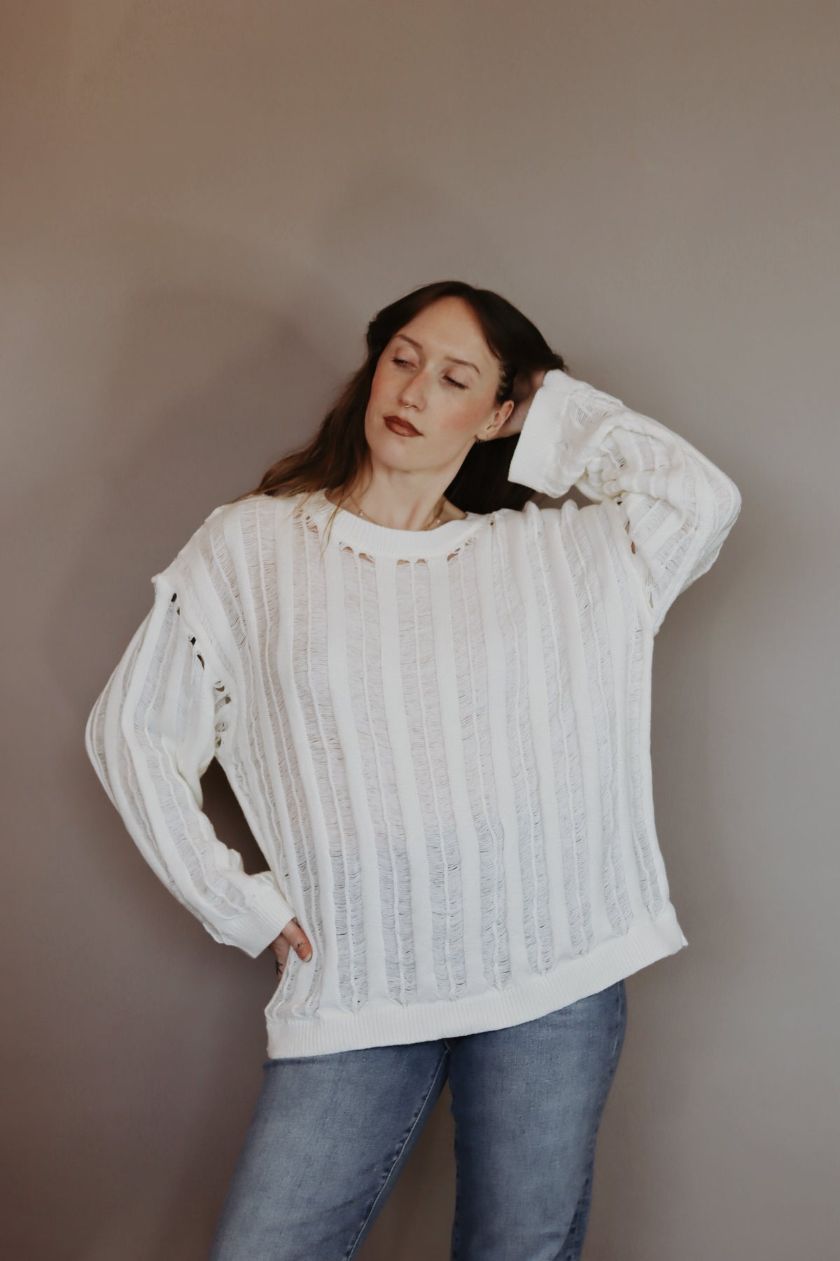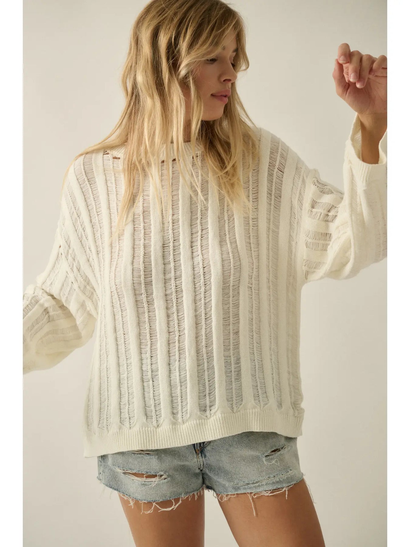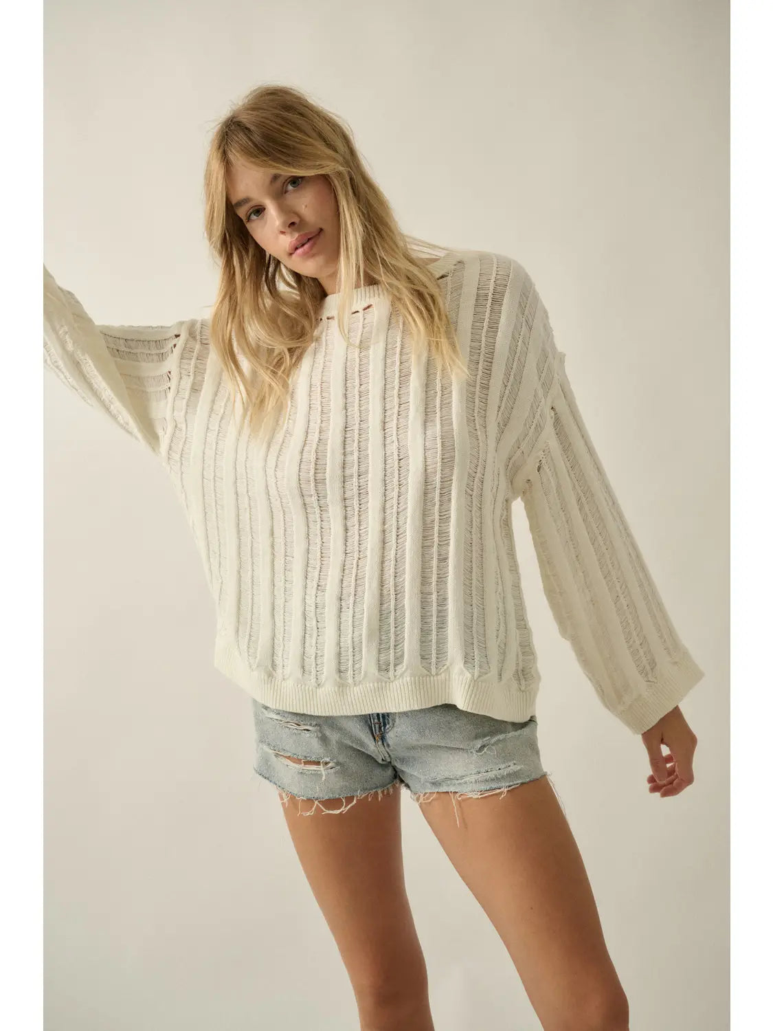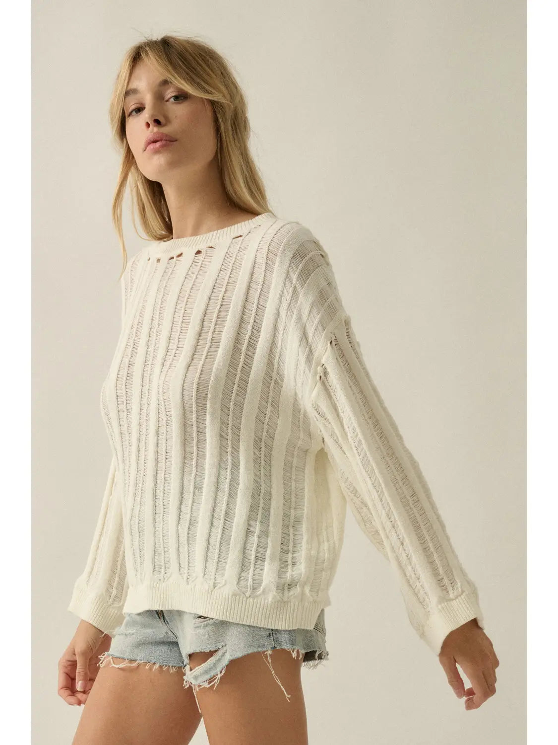 Lexi Semi-Sheer Ladder-Knit Loose-Fit Sweater