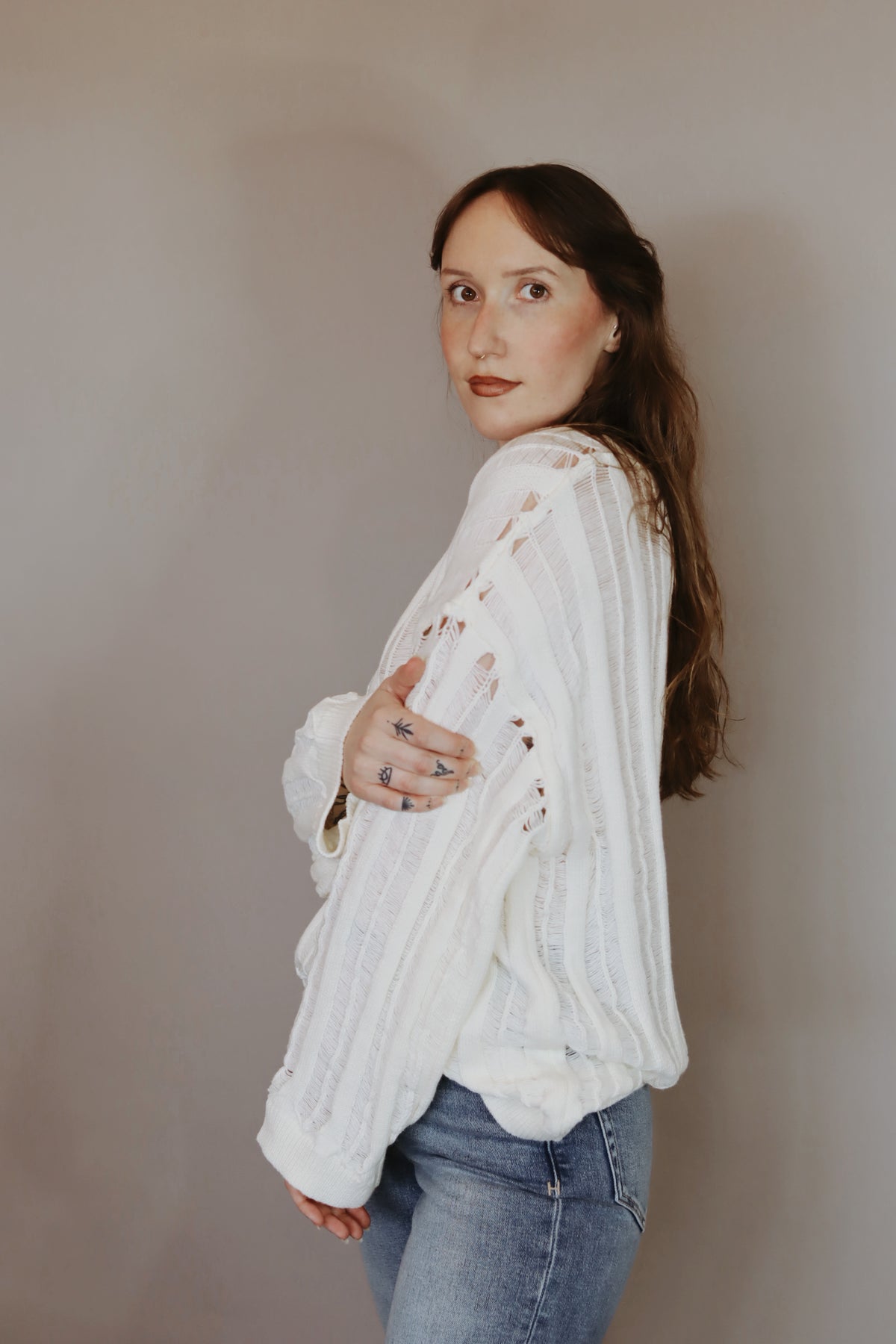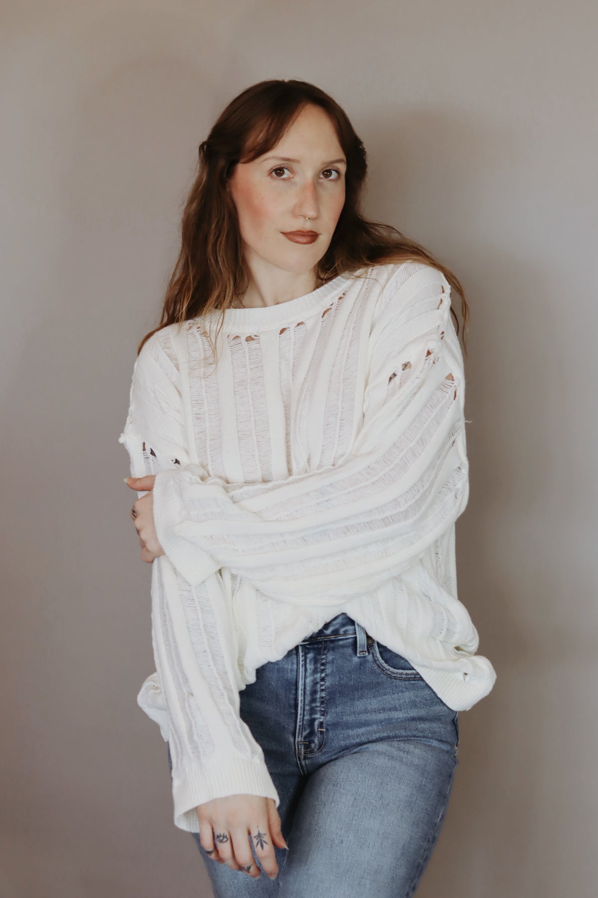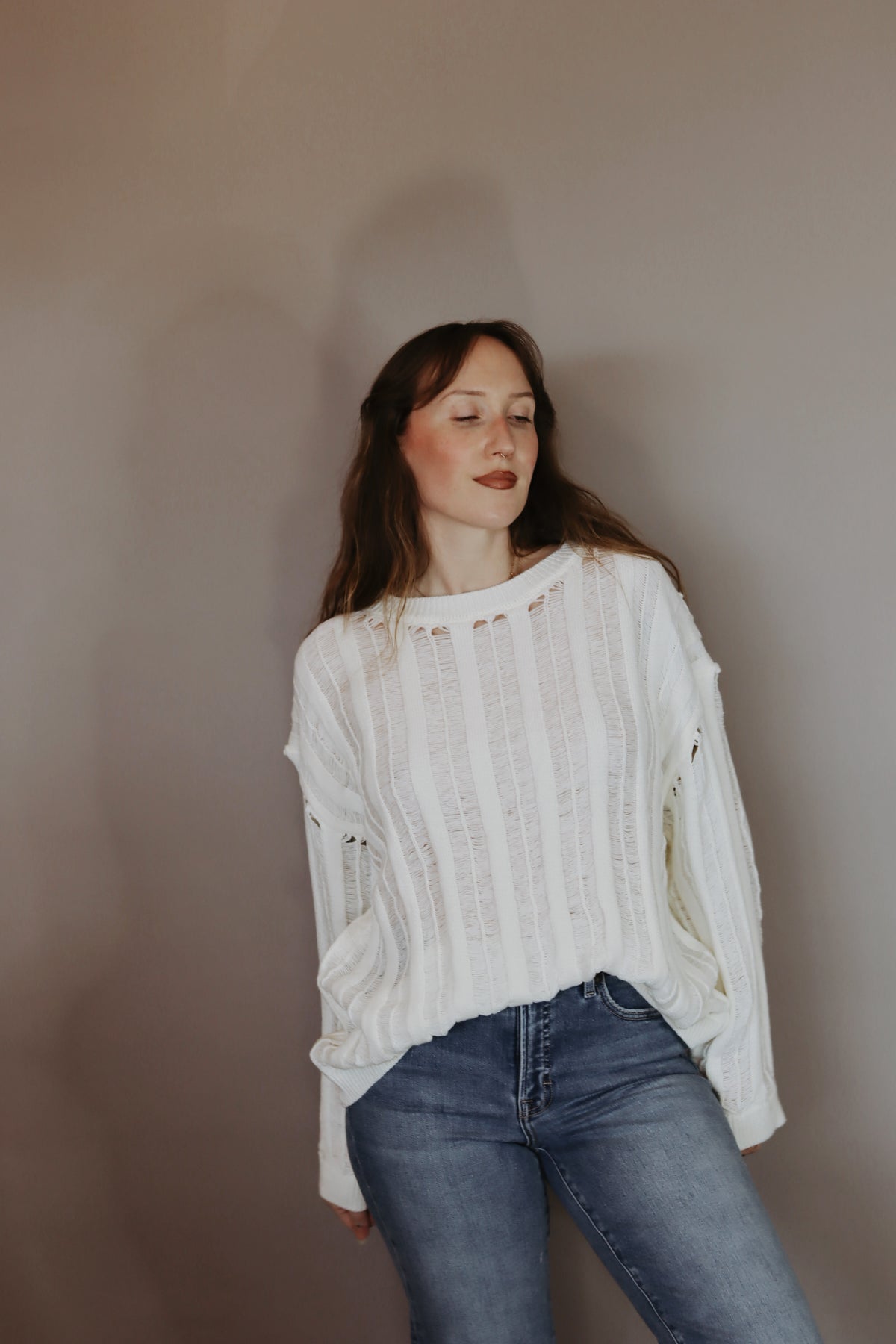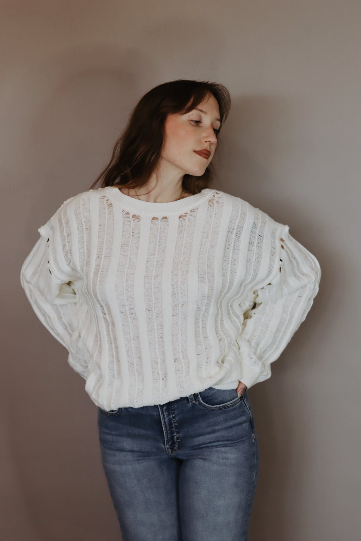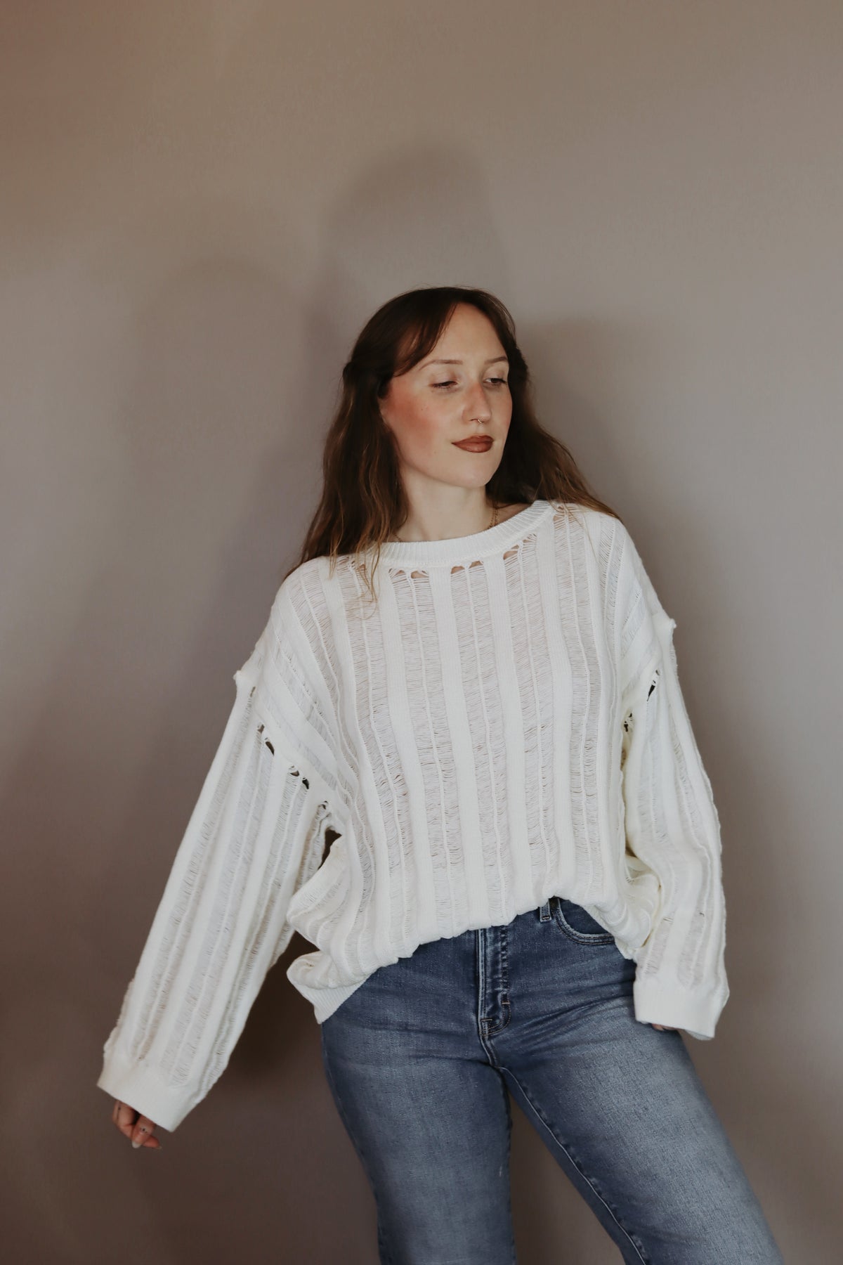 Lexi Semi-Sheer Ladder-Knit Loose-Fit Sweater